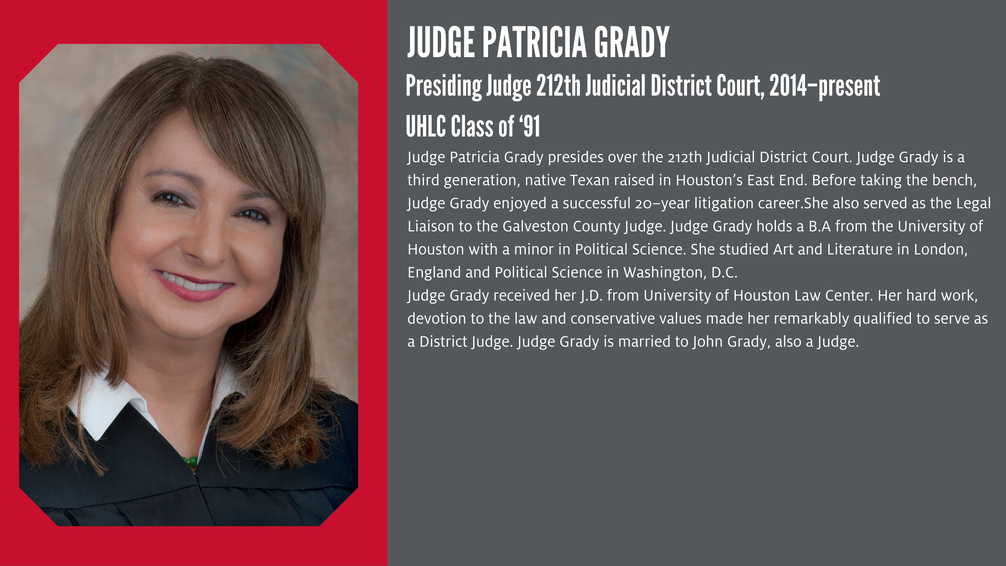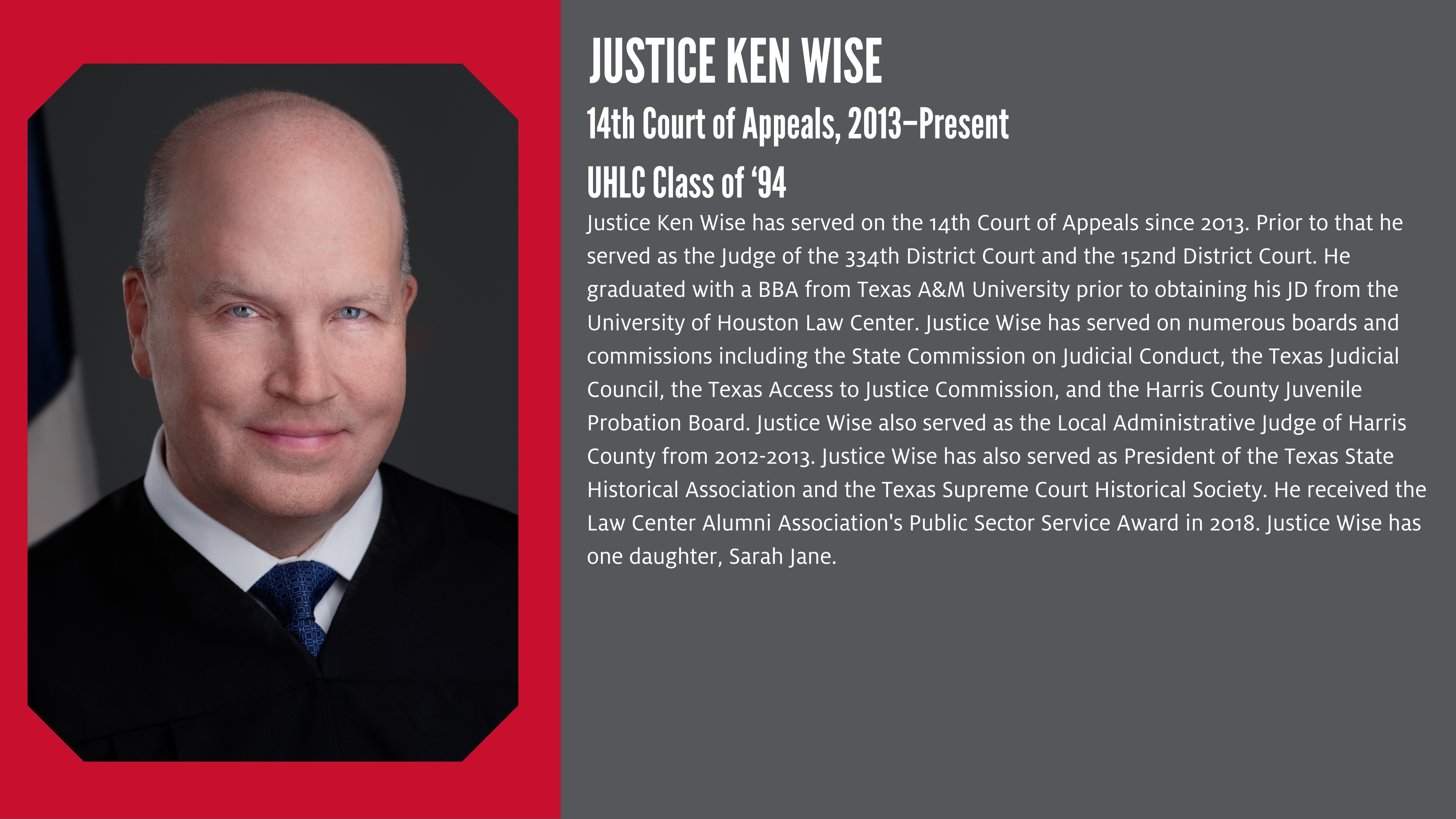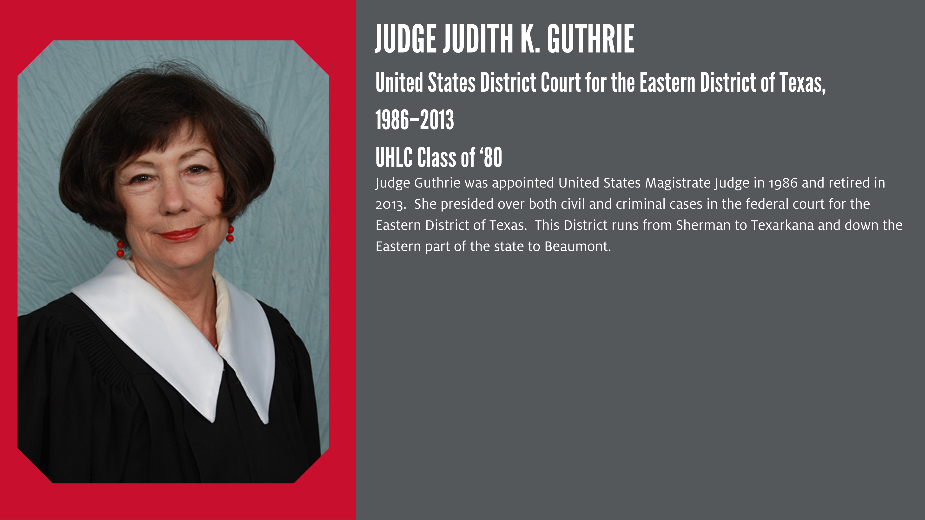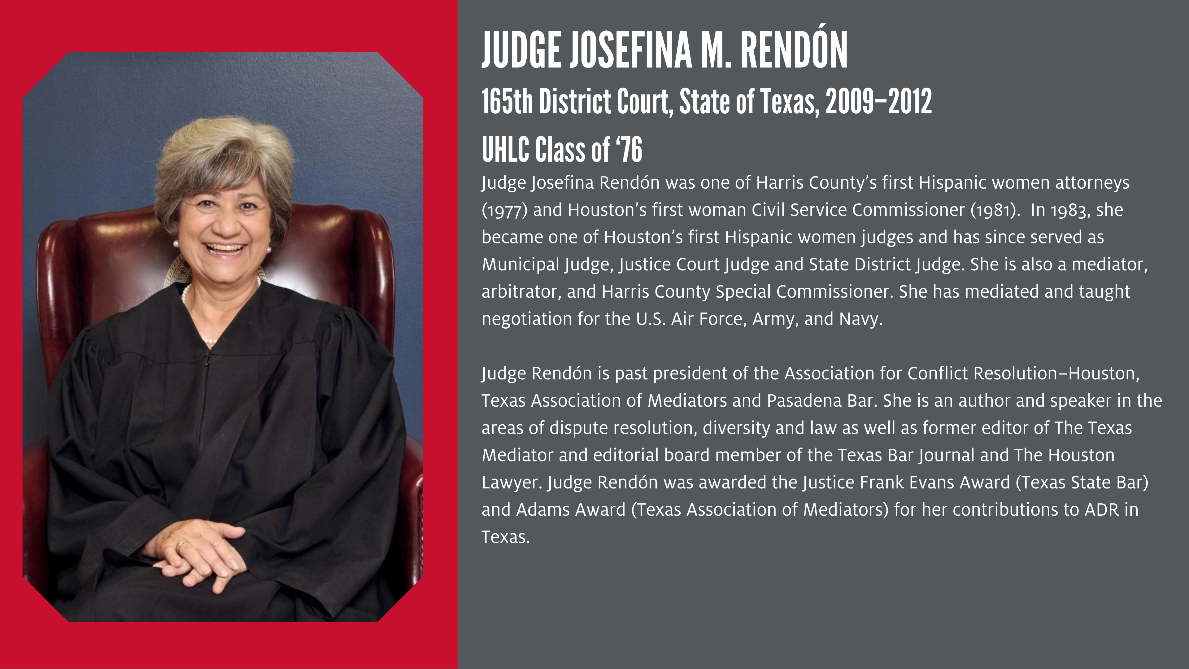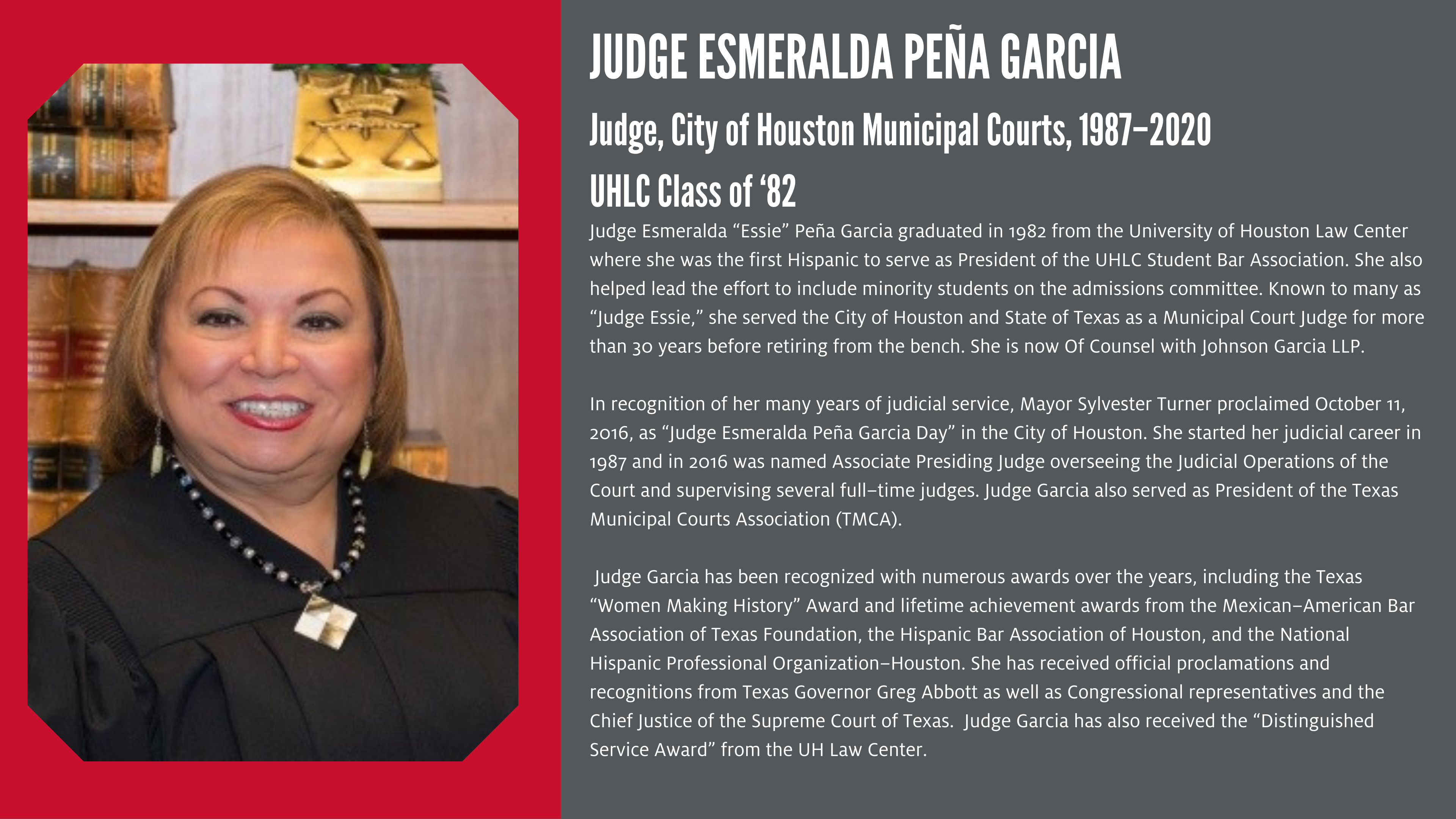 The recognition of the members of the judiciary is an ongoing project made possible by your submissions. To be included on the digital judicial wall and this site, please CLICK HERE. For questions, to update an existing slide, or to add someone you know, please contact Kristina Van Arsdel at kgvanars@central.uh.edu.