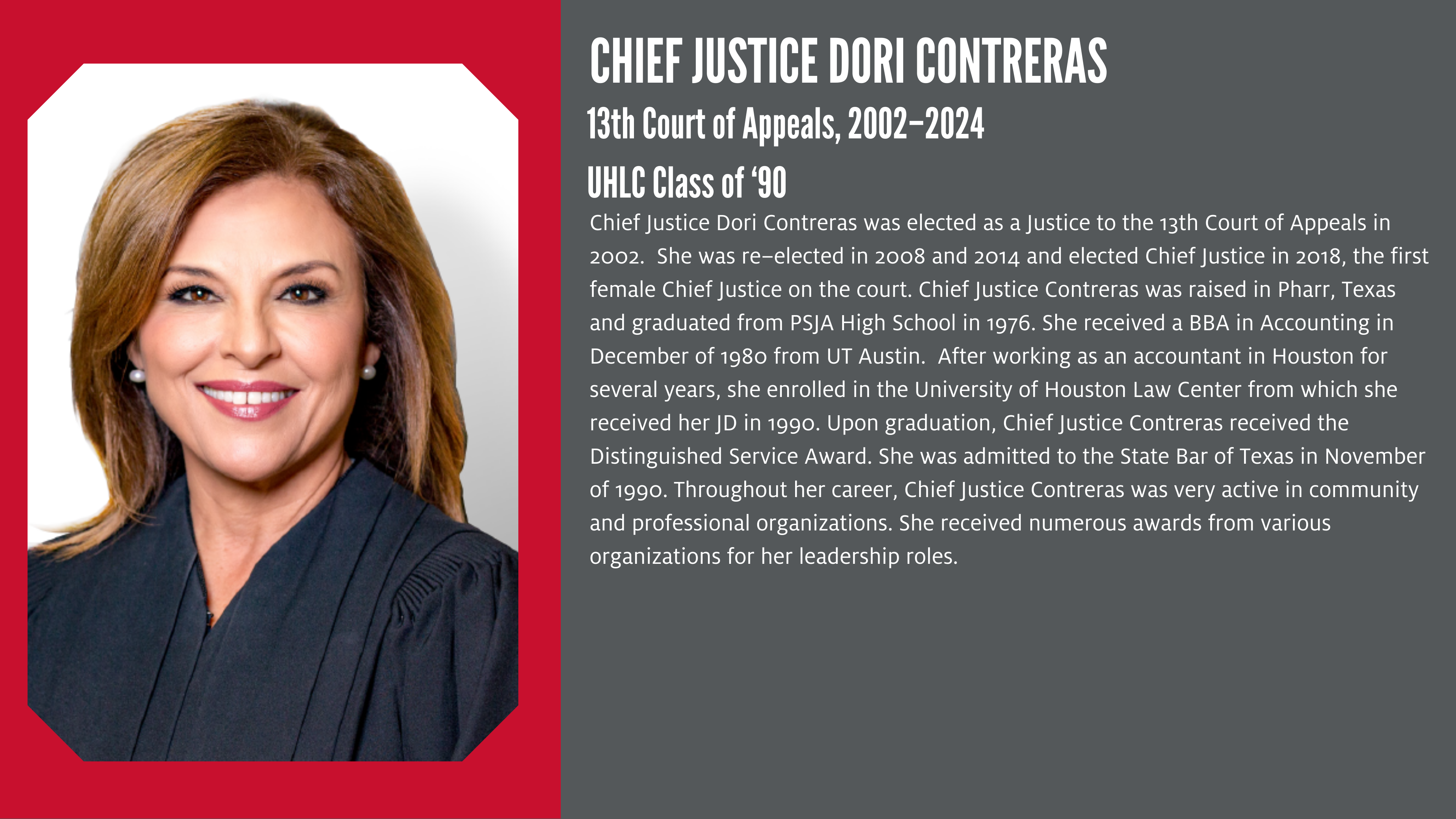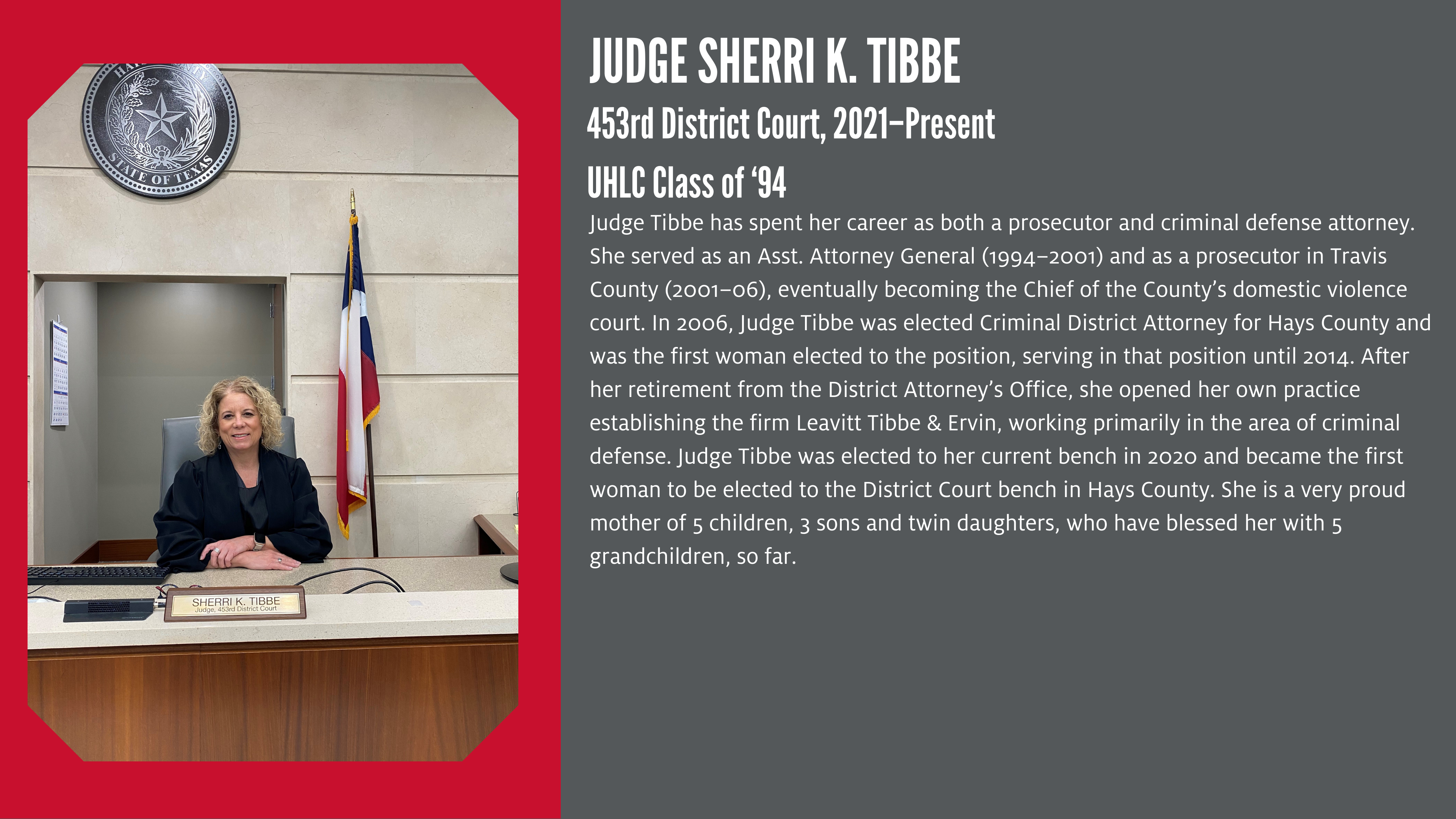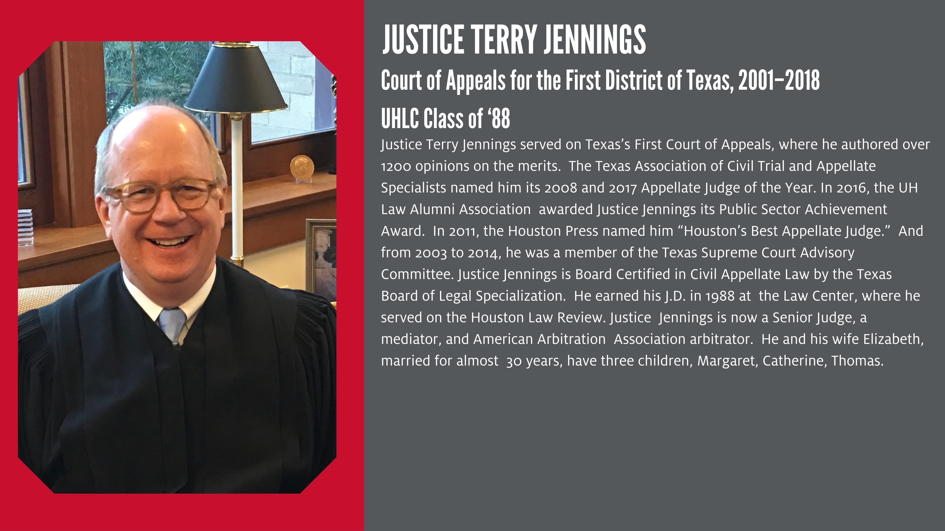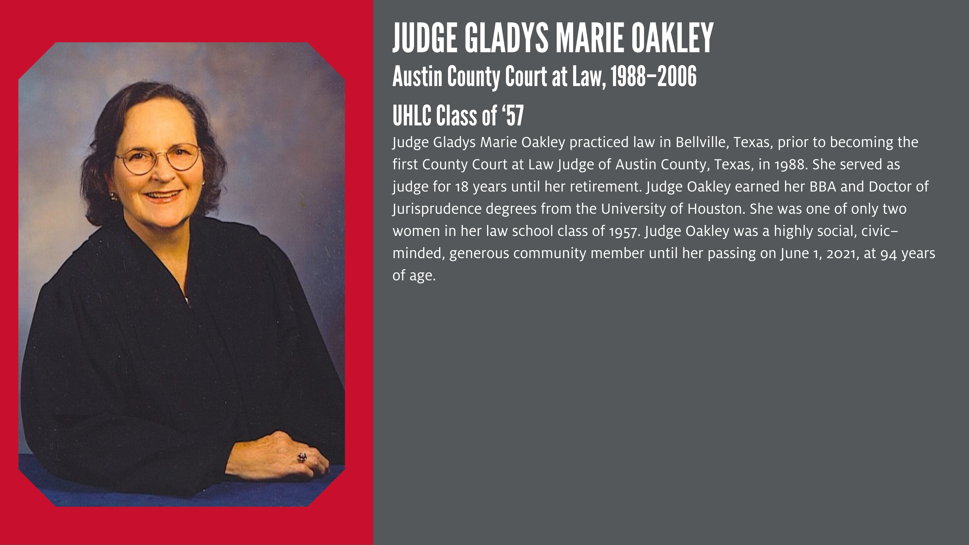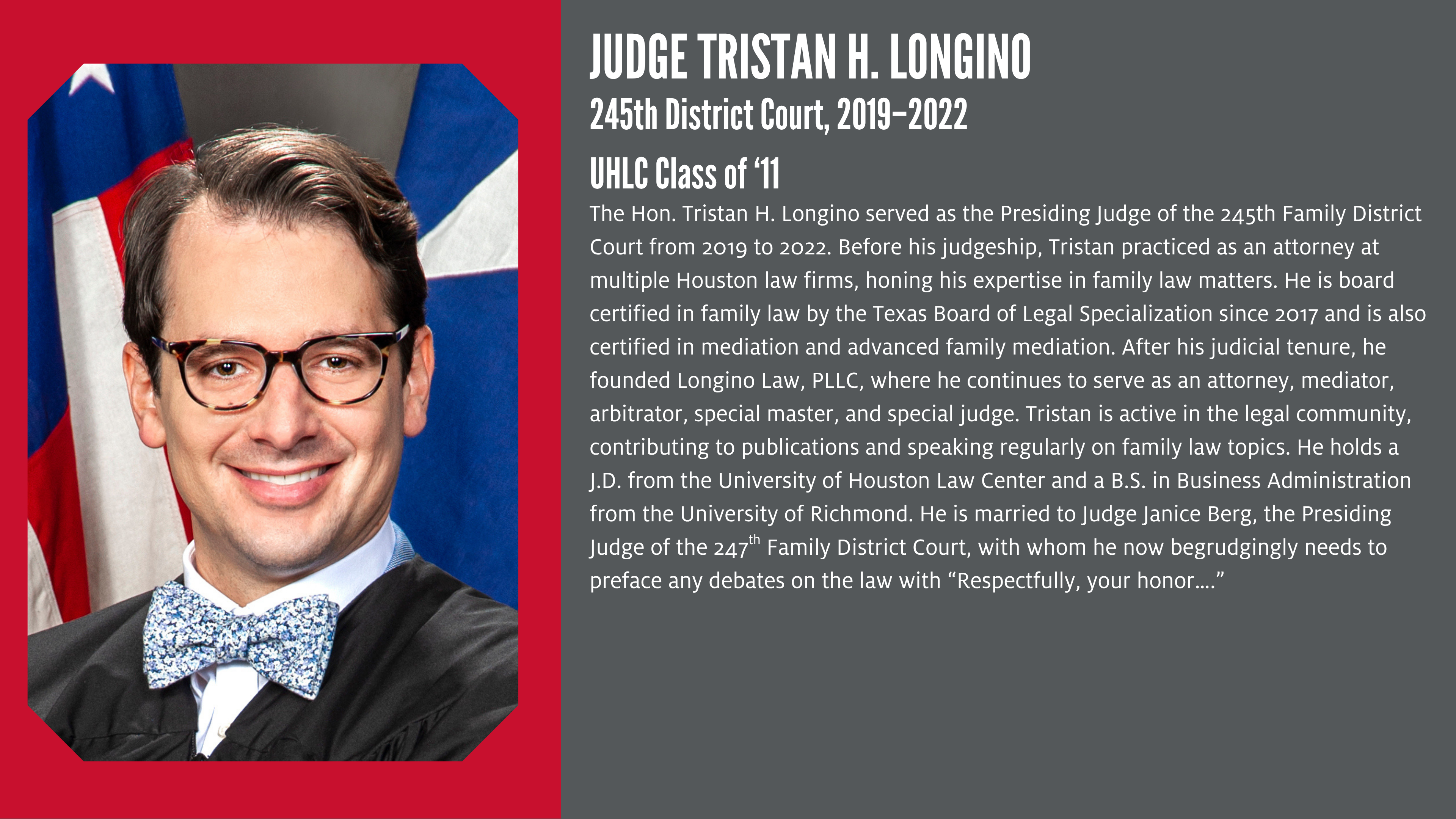 The recognition of the members of the judiciary is an ongoing project made possible by your submissions. To be included on the digital judicial wall and this site, please CLICK HERE. For questions, to update an existing slide, or to add someone you know, please contact Kristina Van Arsdel at kgvanars@central.uh.edu.
