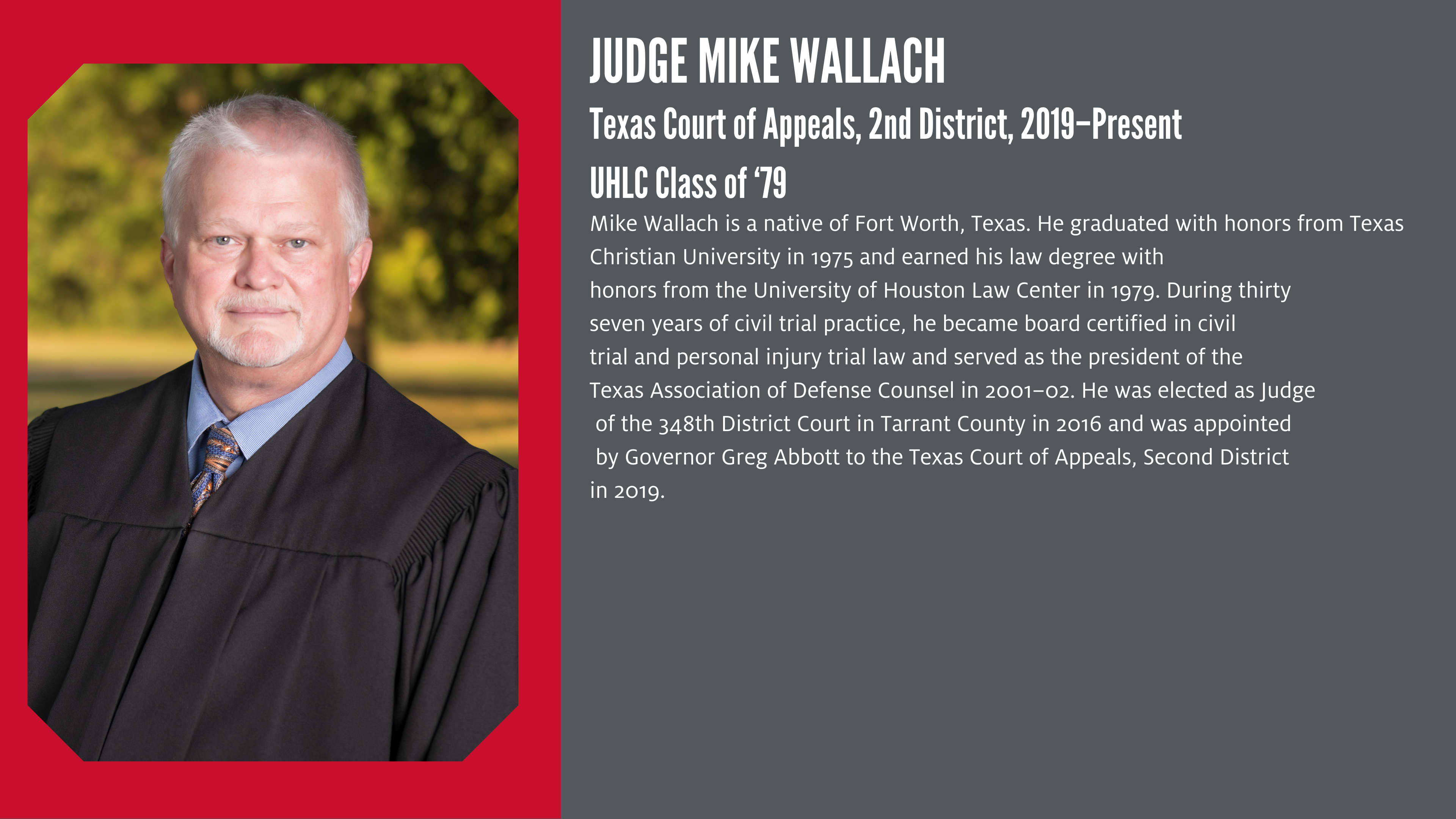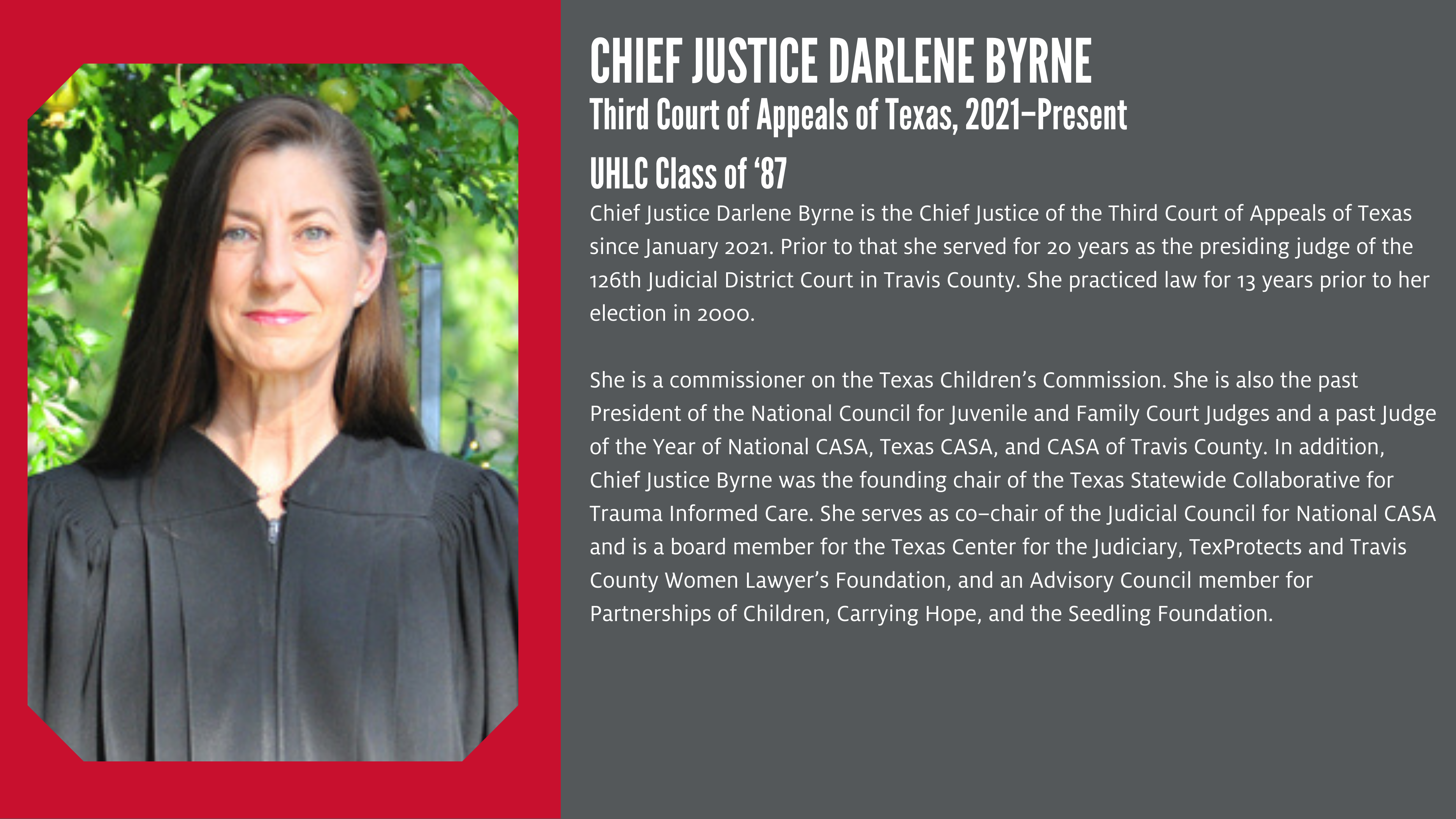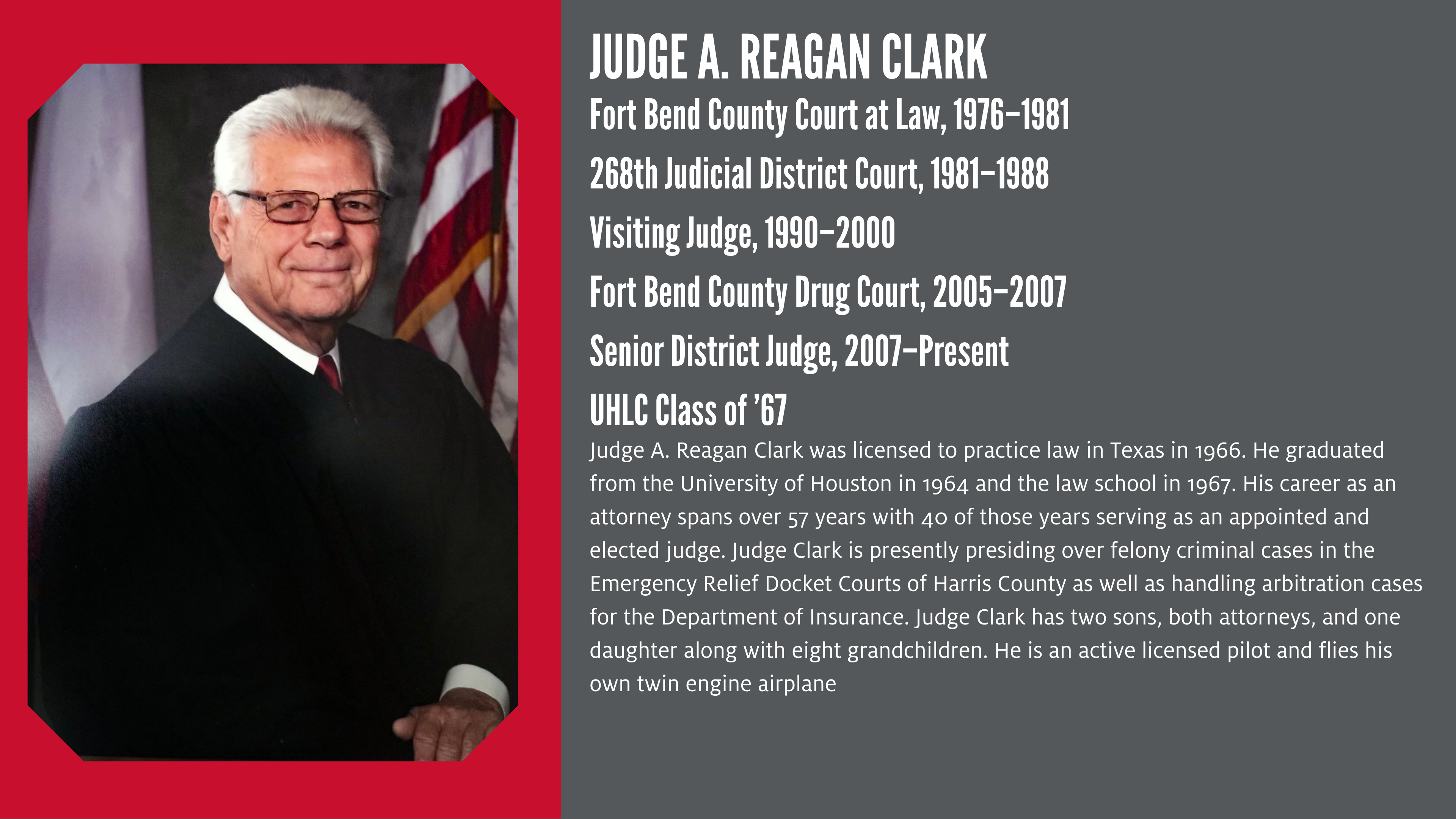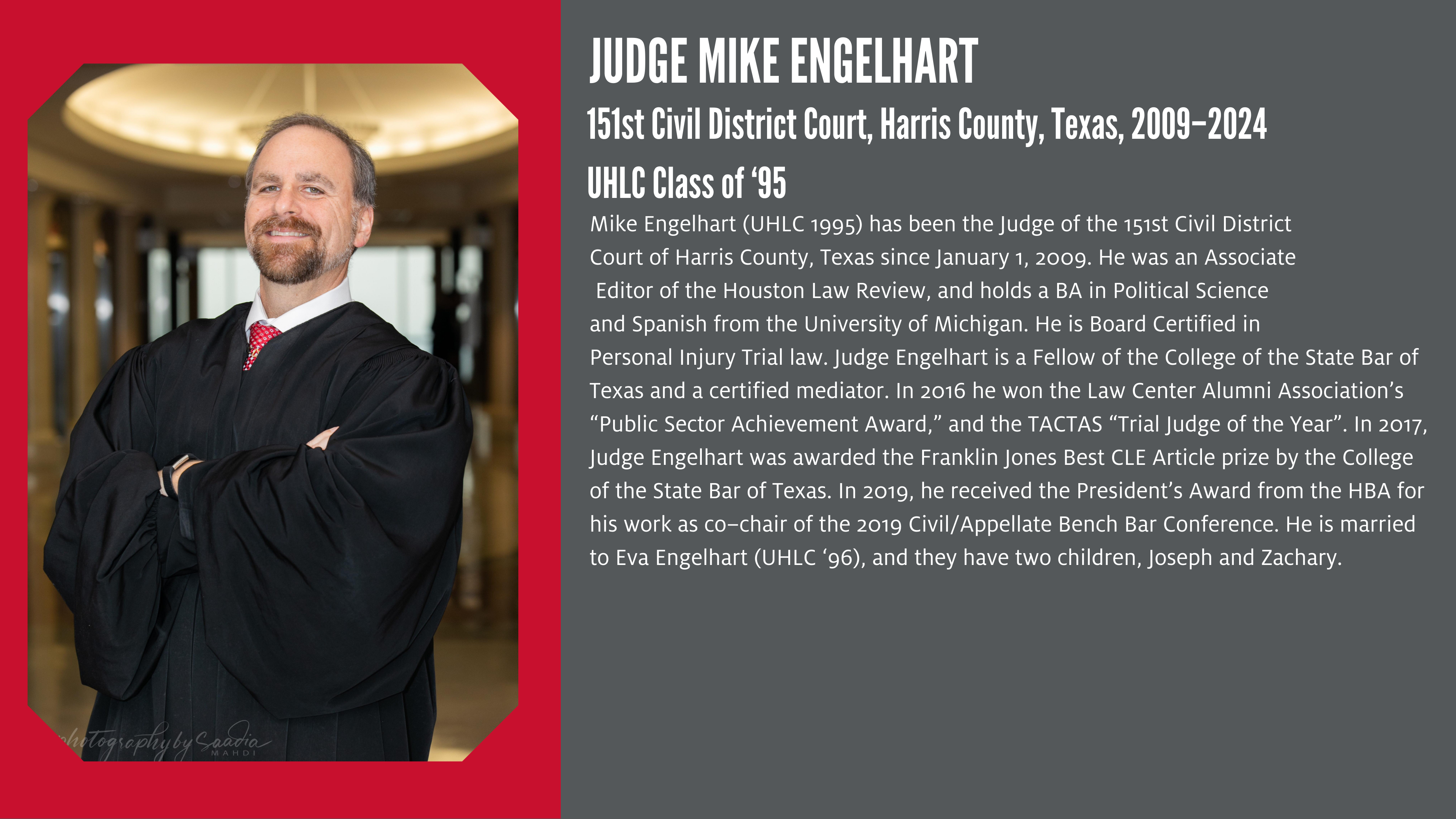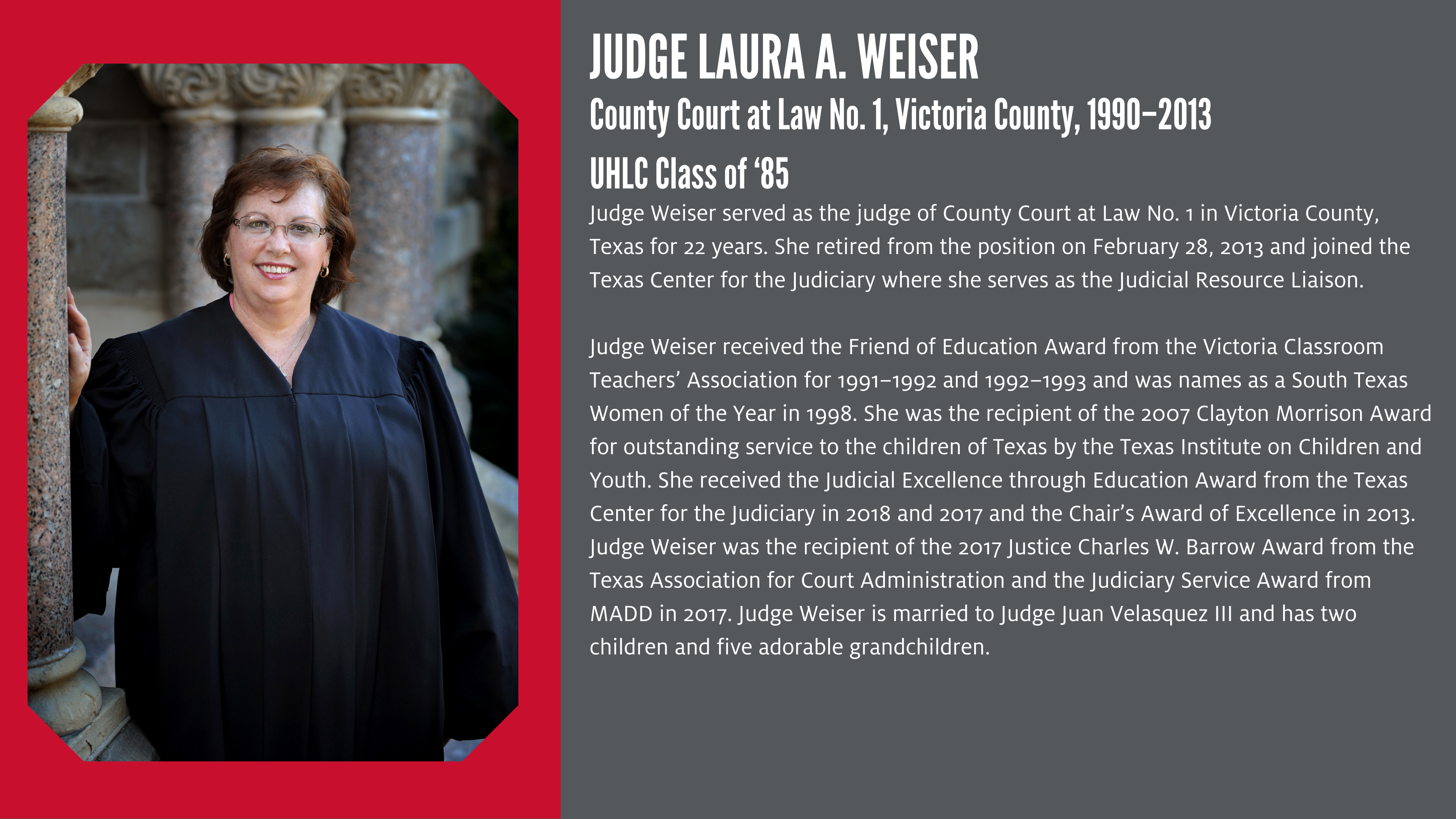 The recognition of the members of the judiciary is an ongoing project made possible by your submissions. To be included on the digital judicial wall and this site, please CLICK HERE. For questions, to update an existing slide, or to add someone you know, please contact Kristina Van Arsdel at kgvanars@central.uh.edu.