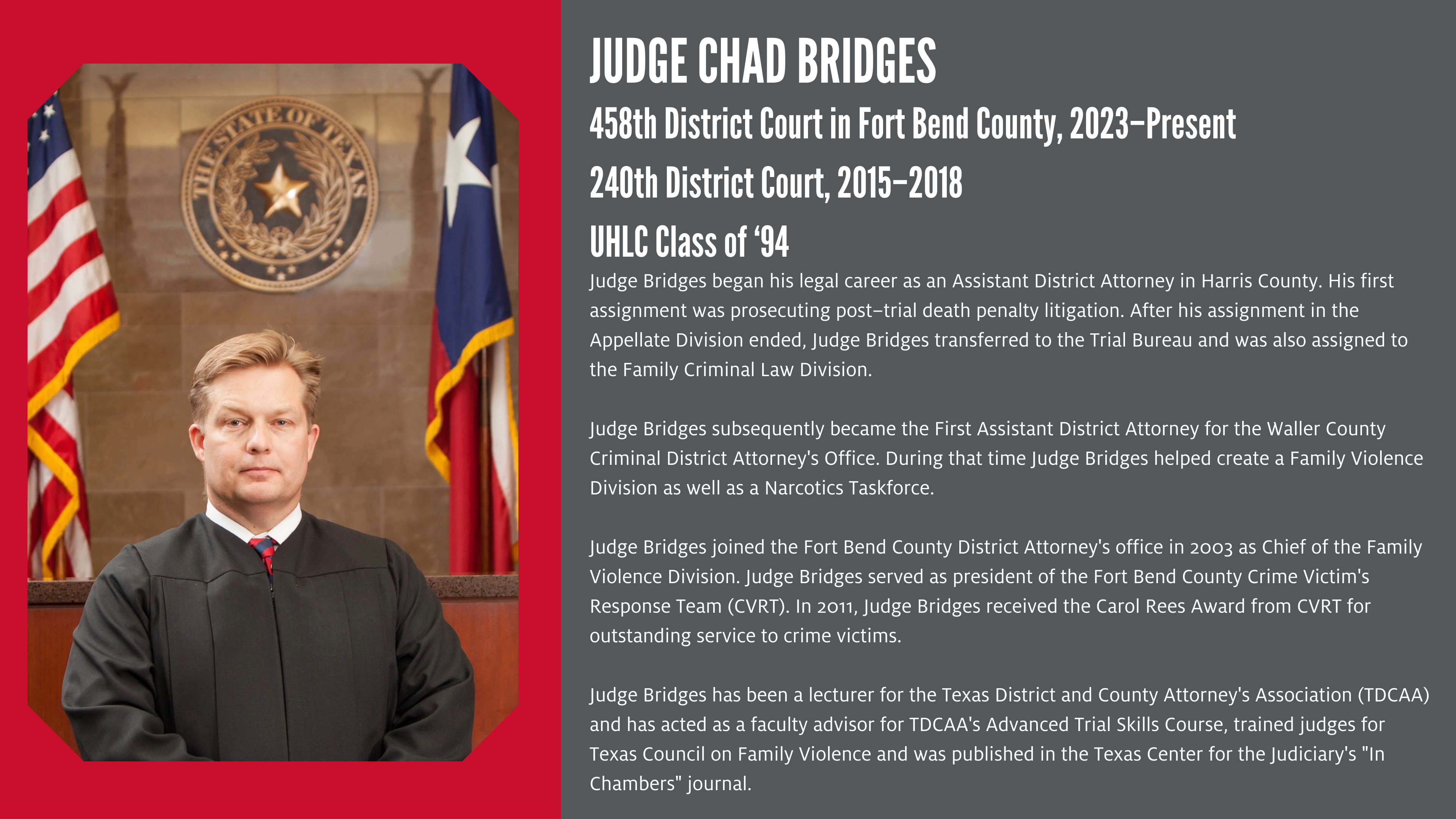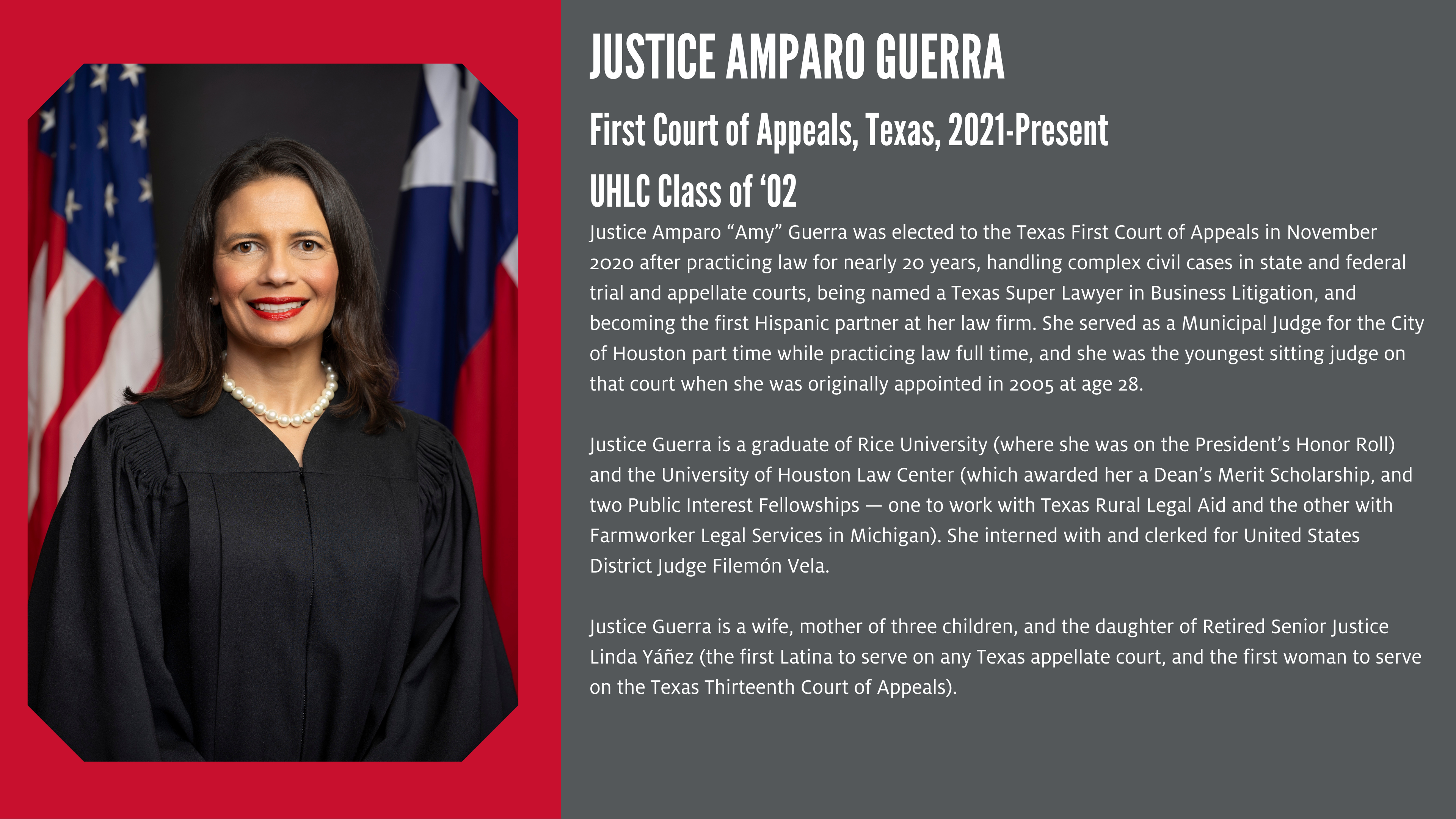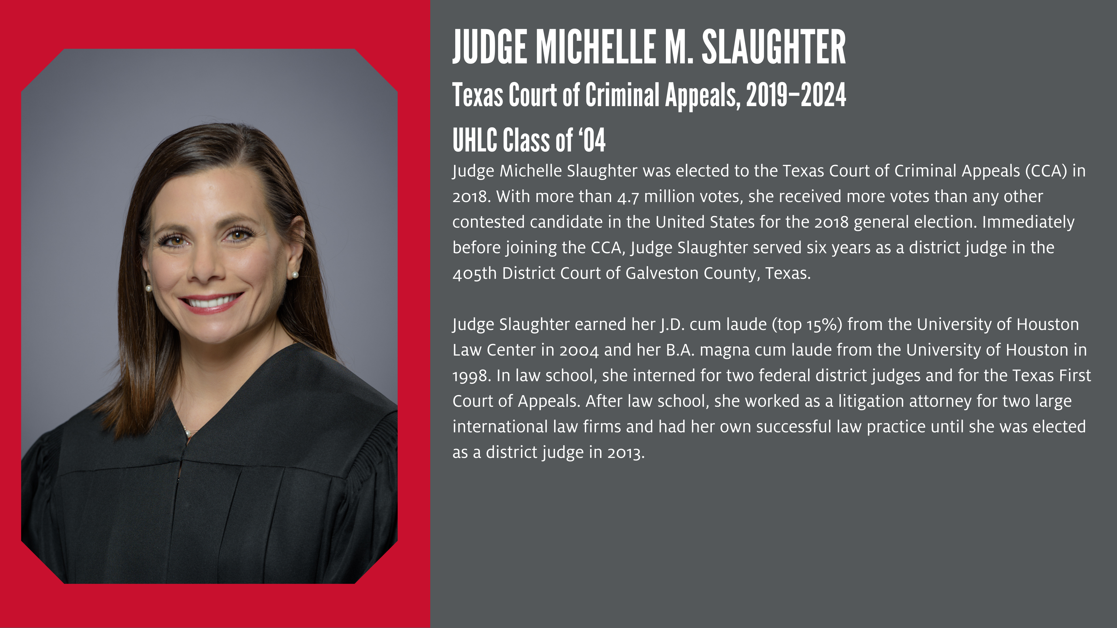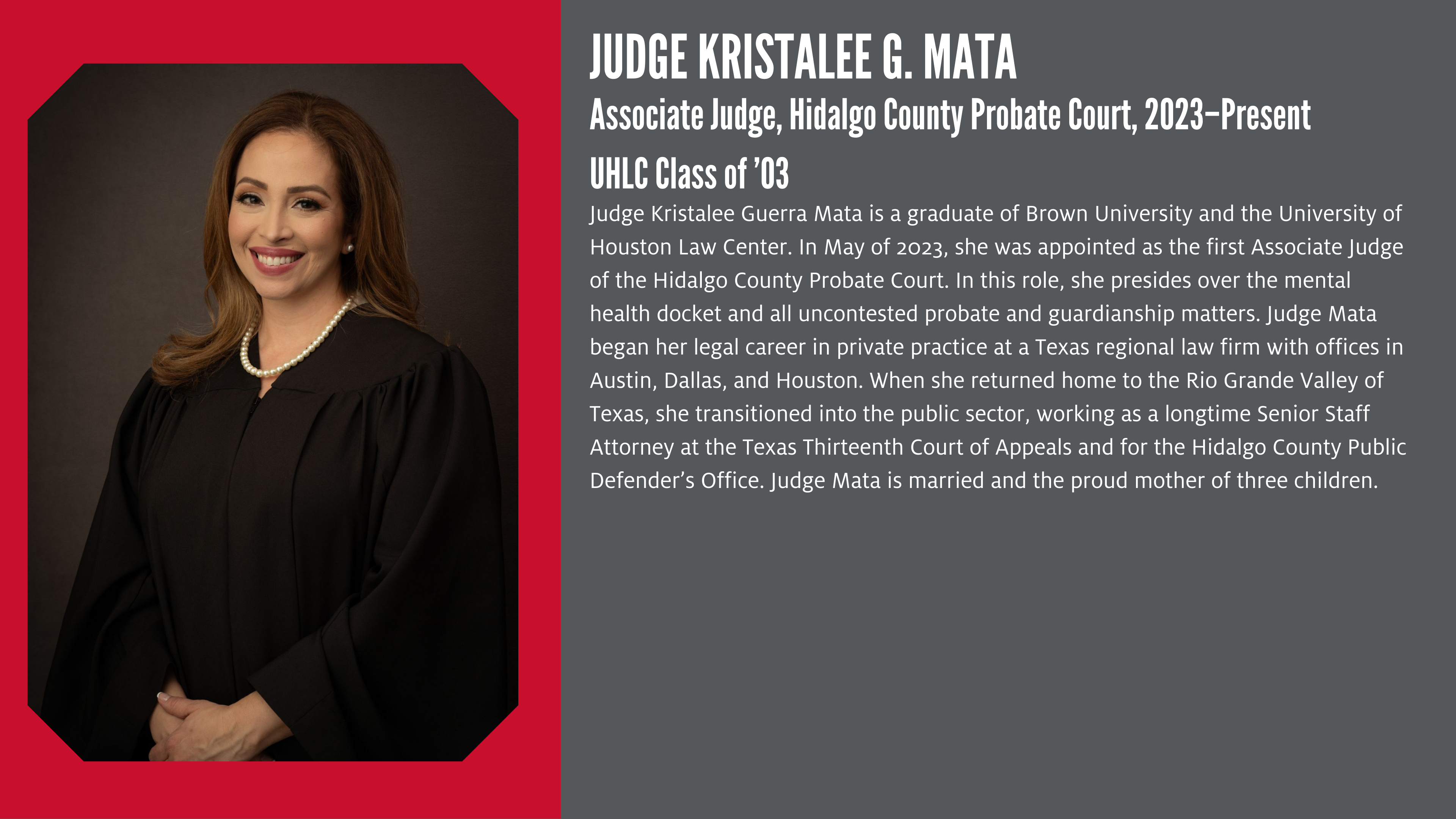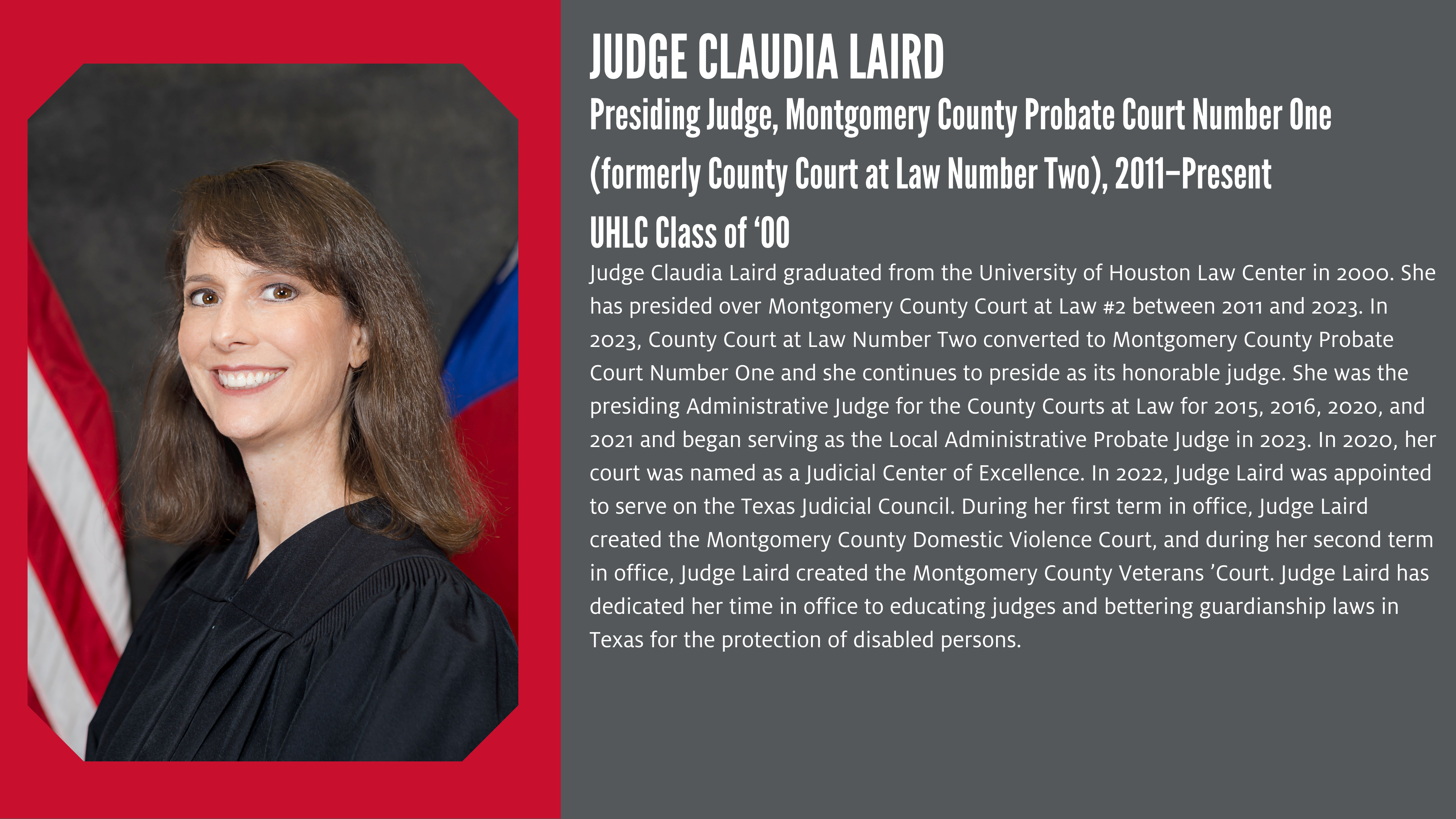 The recognition of the members of the judiciary is an ongoing project made possible by your submissions. To be included on the digital judicial wall and this site, please CLICK HERE. For questions, to update an existing slide, or to add someone you know, please contact Kristina Van Arsdel at kgvanars@central.uh.edu.