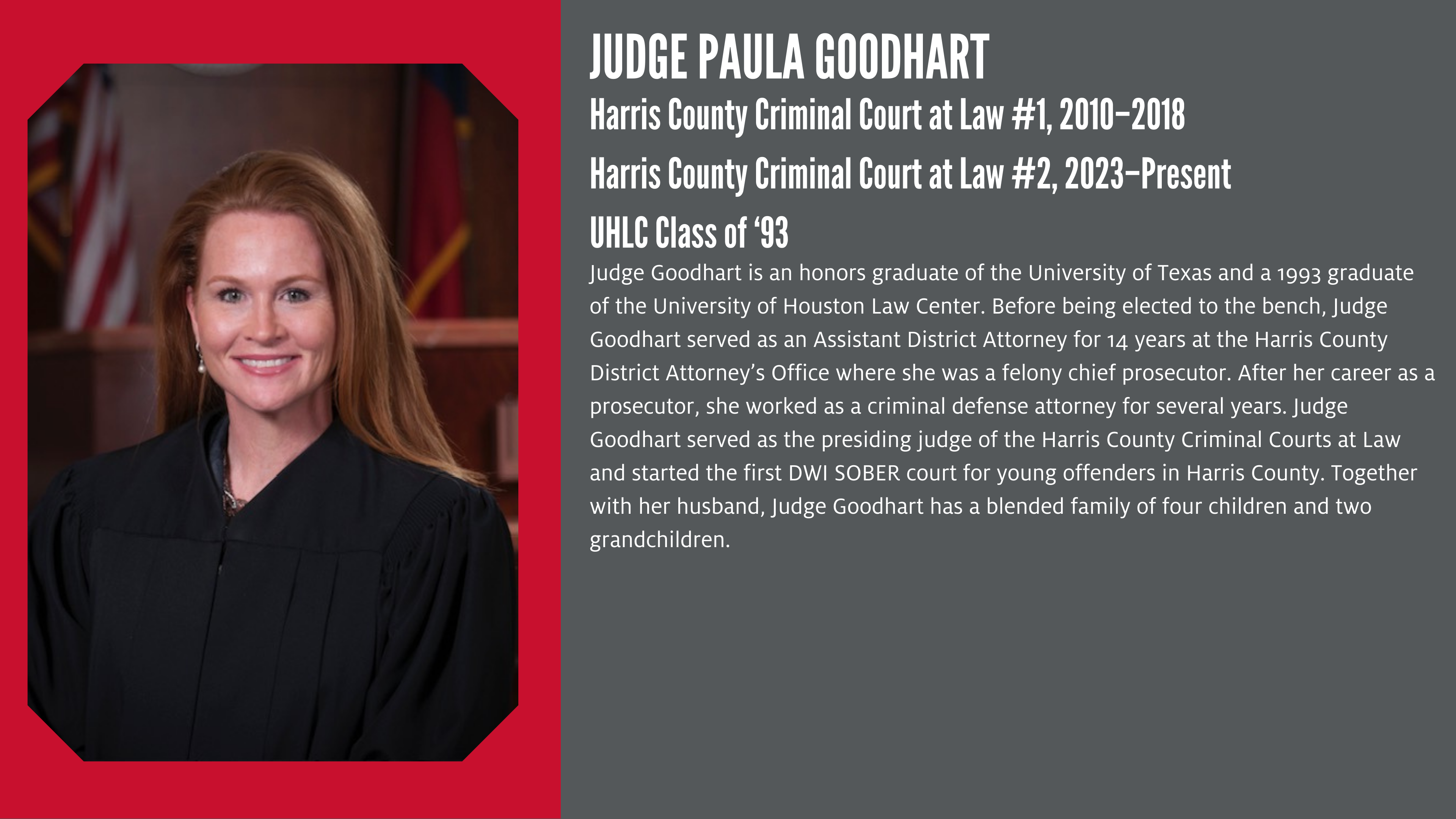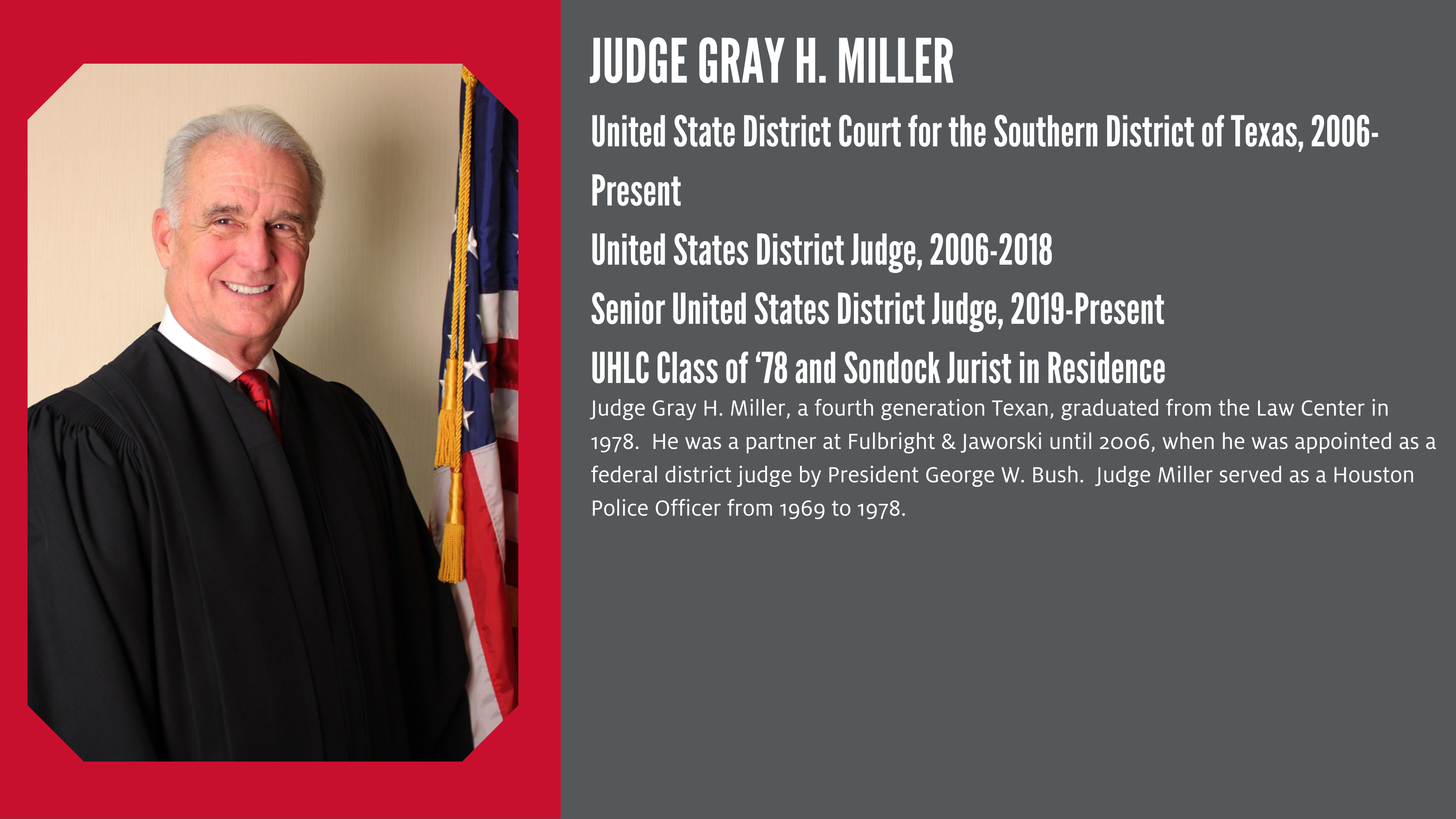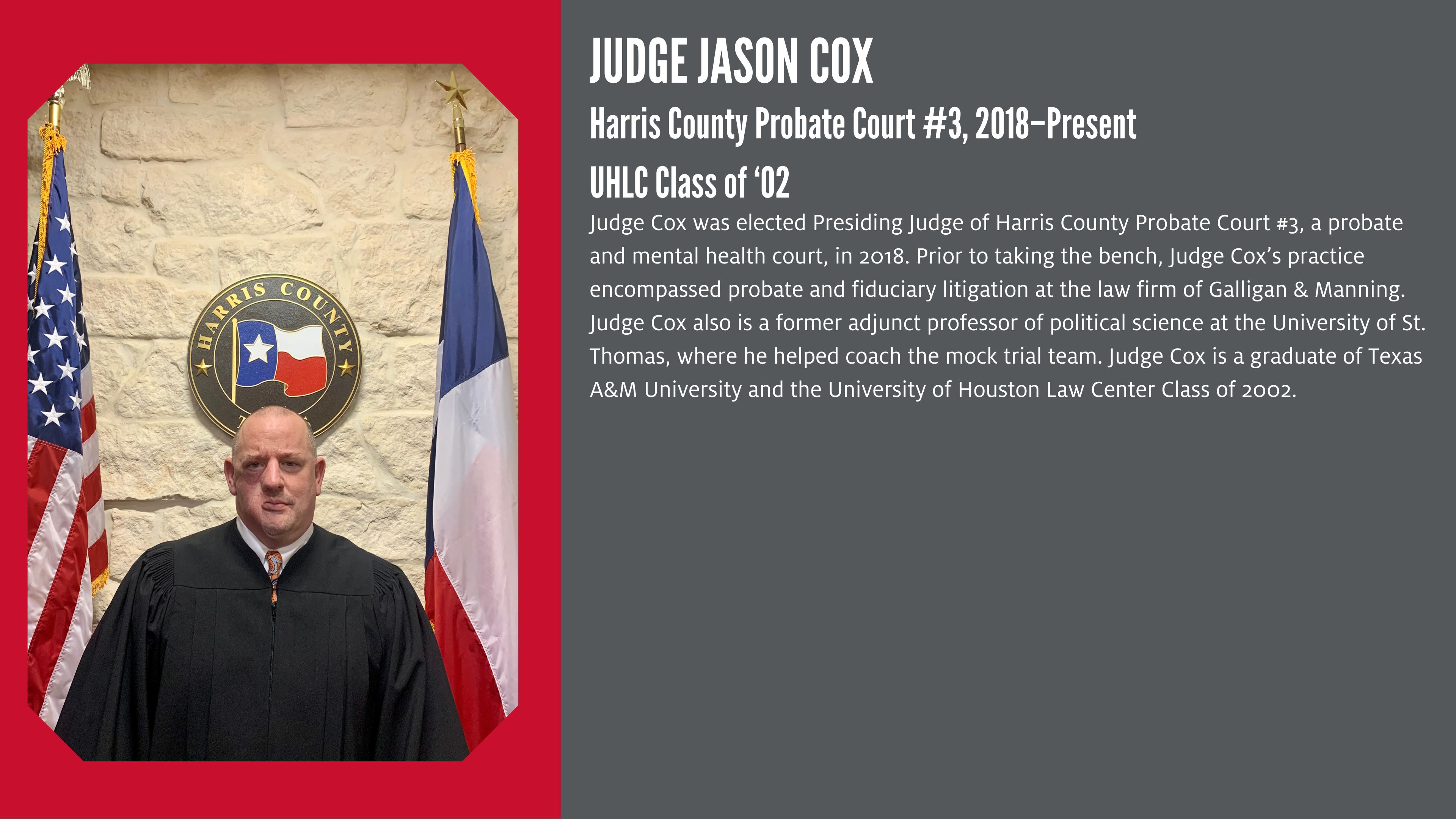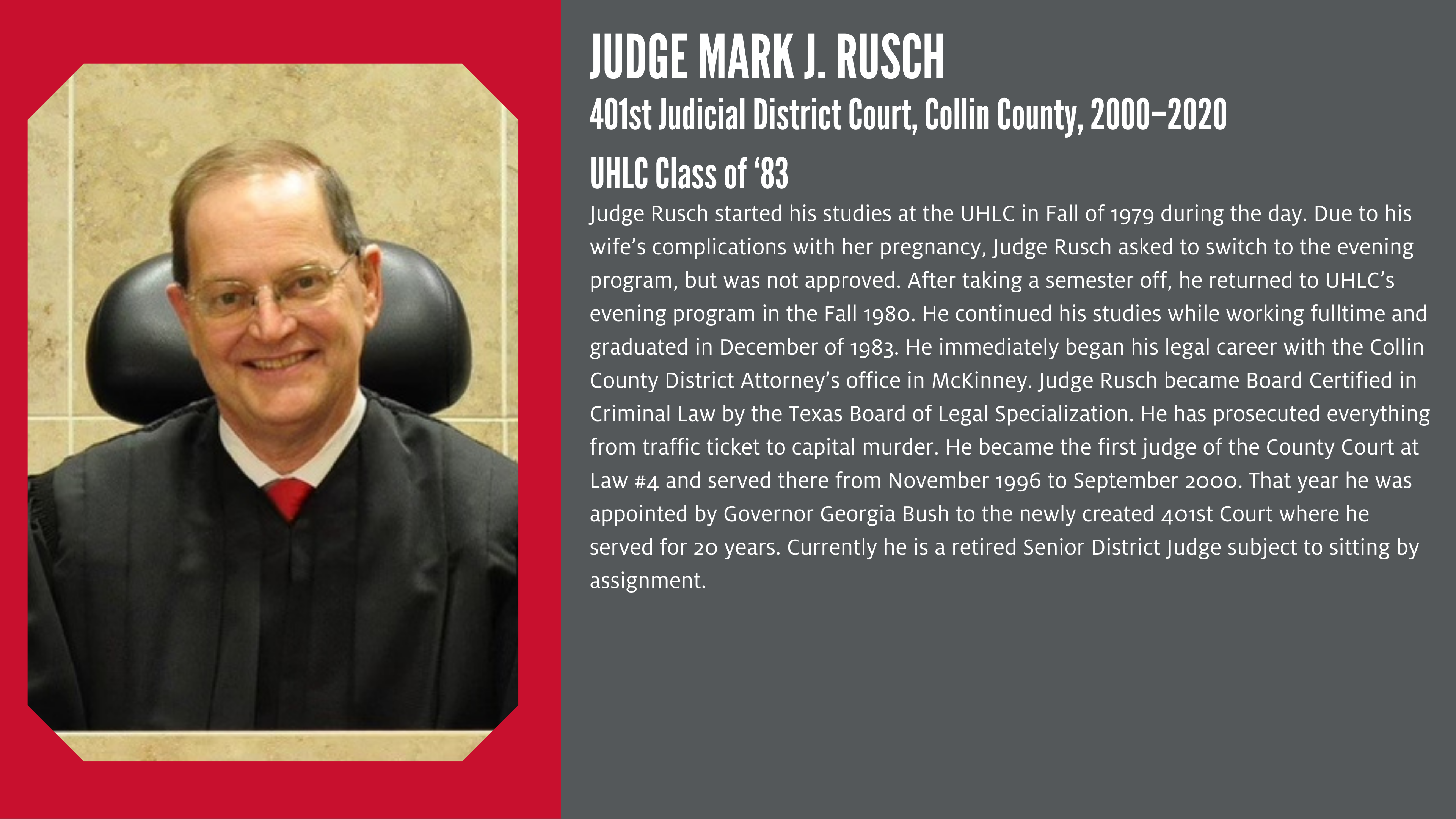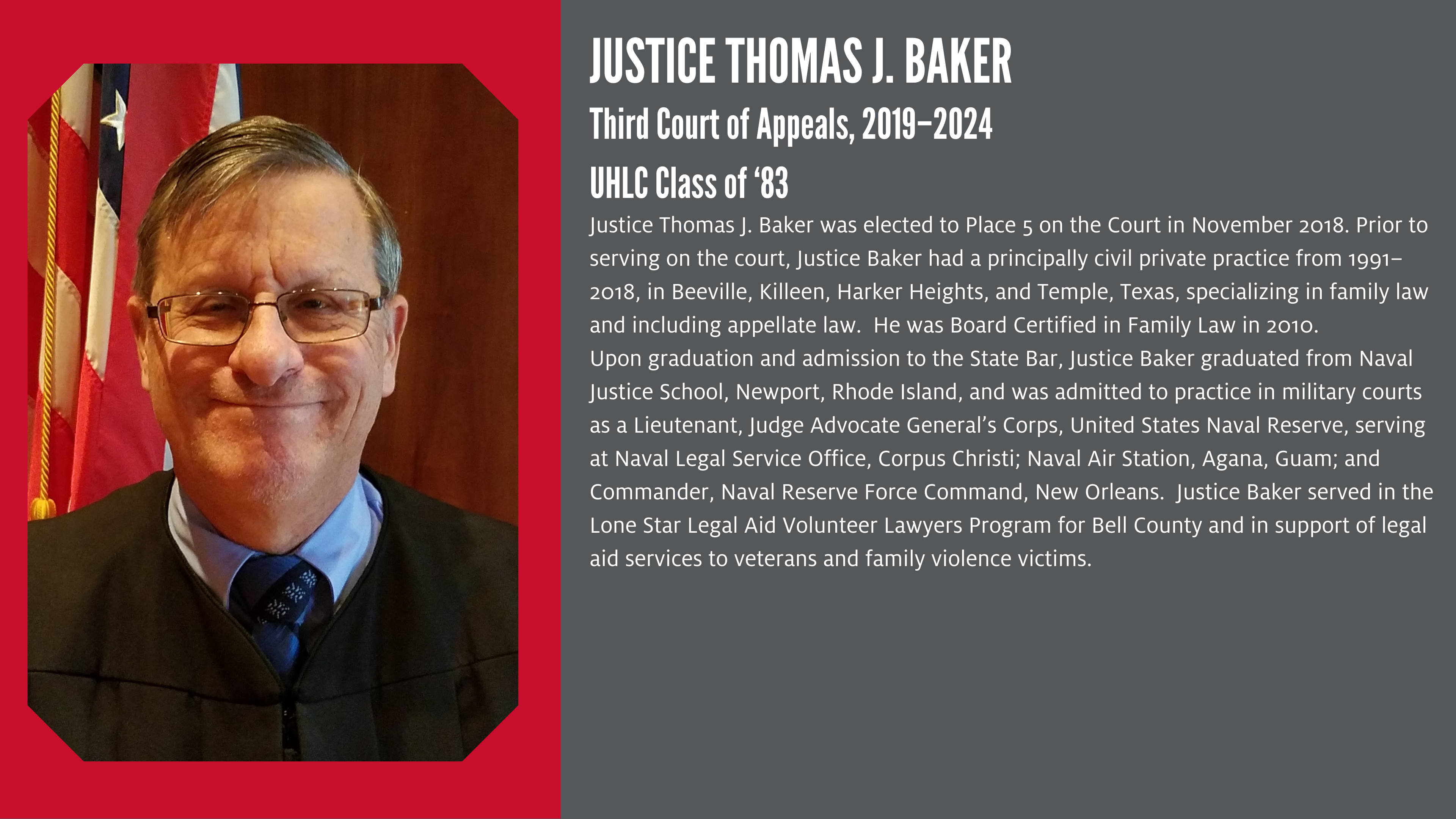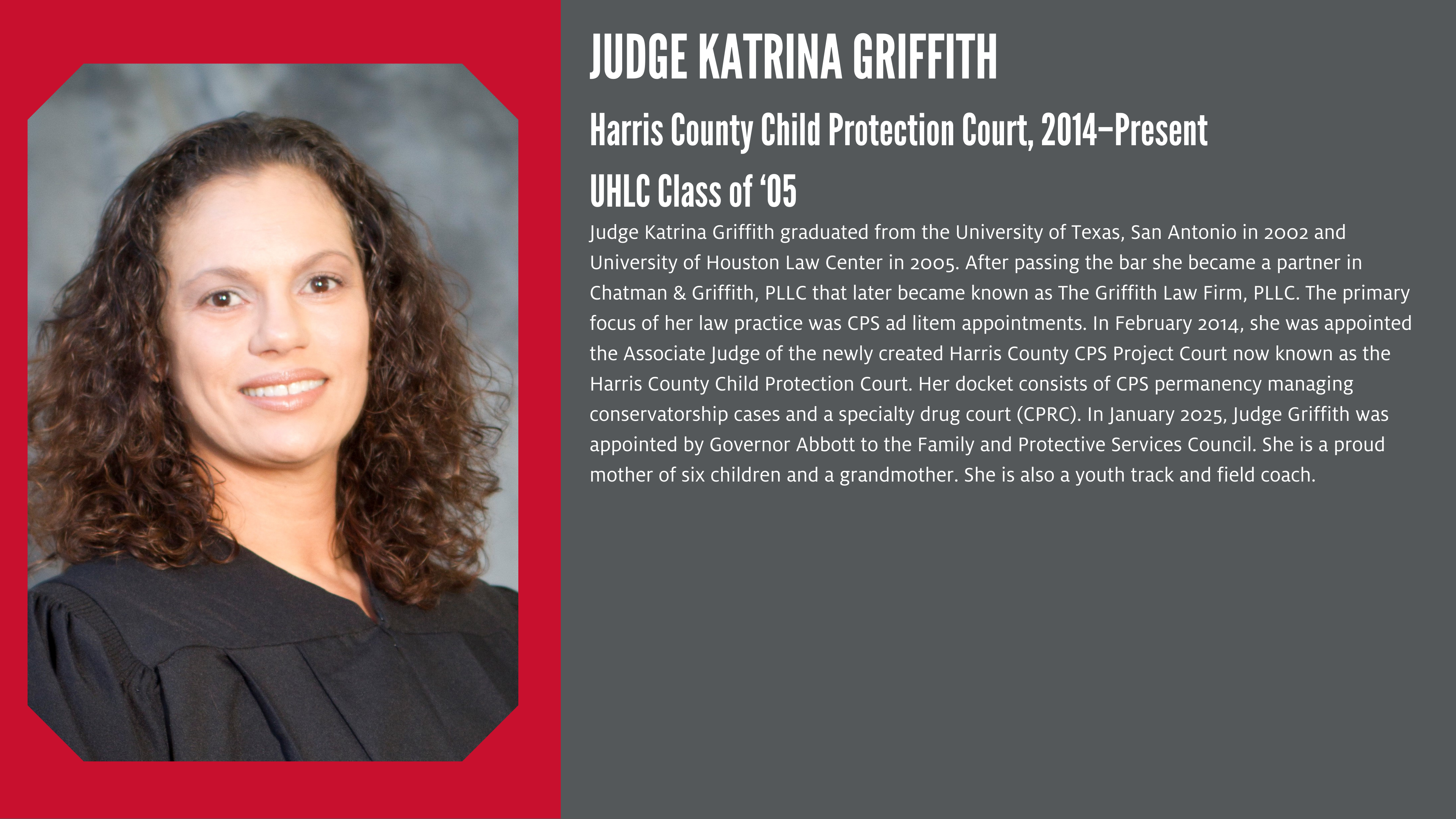 The recognition of the members of the judiciary is an ongoing project made possible by your submissions. To be included on the digital judicial wall and this site, please CLICK HERE. For questions, to update an existing slide, or to add someone you know, please contact Kristina Van Arsdel at kgvanars@central.uh.edu.