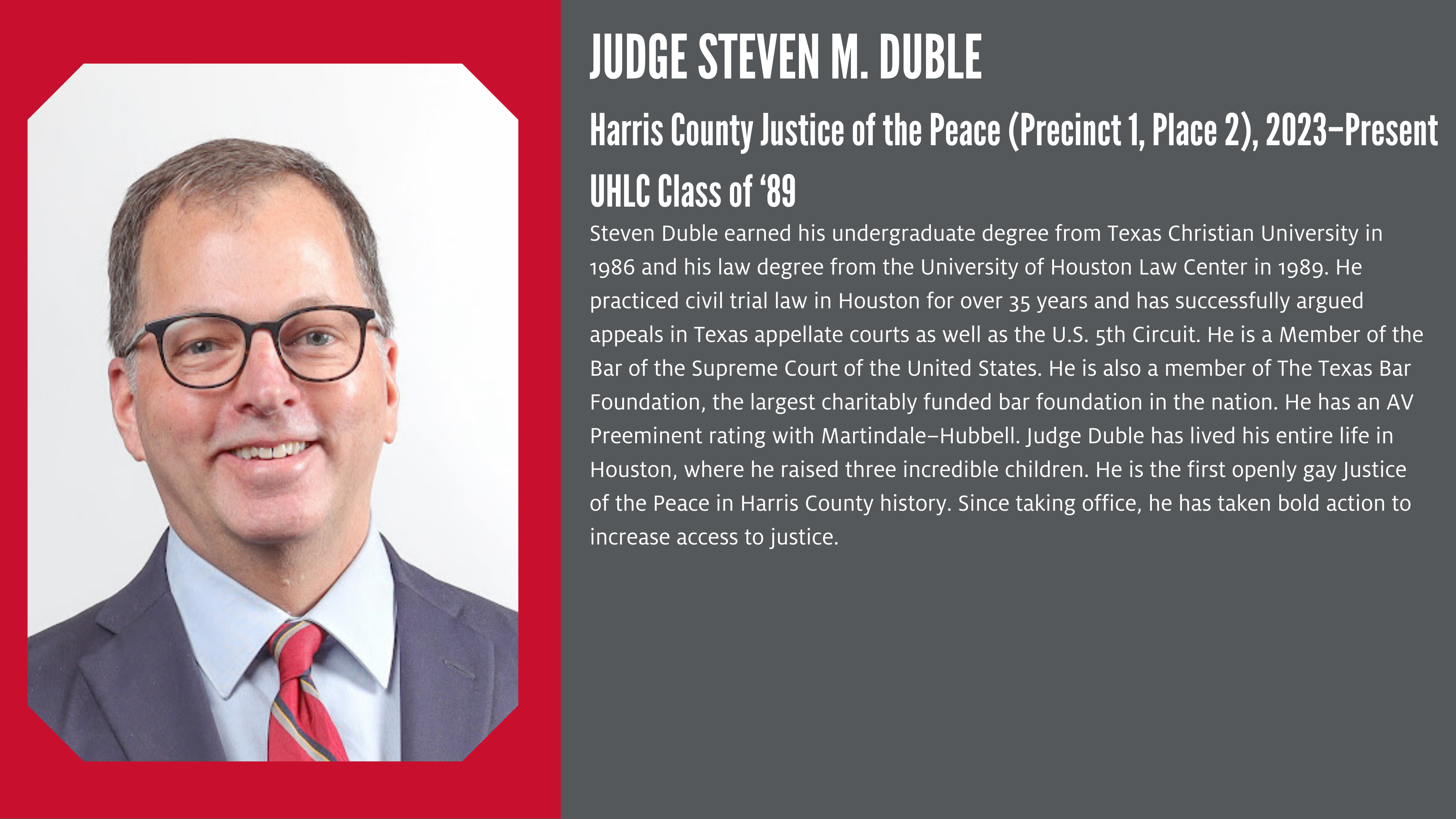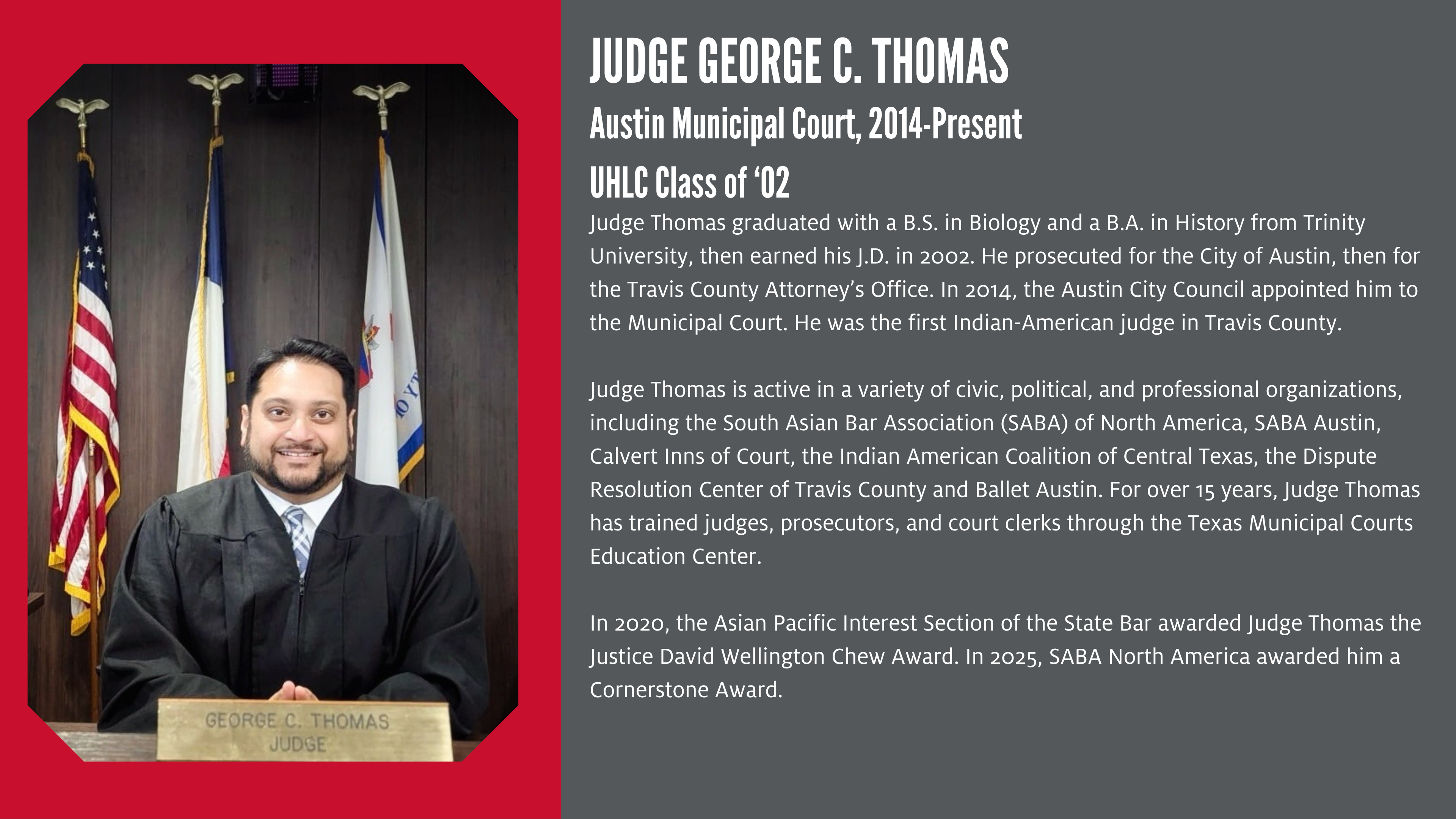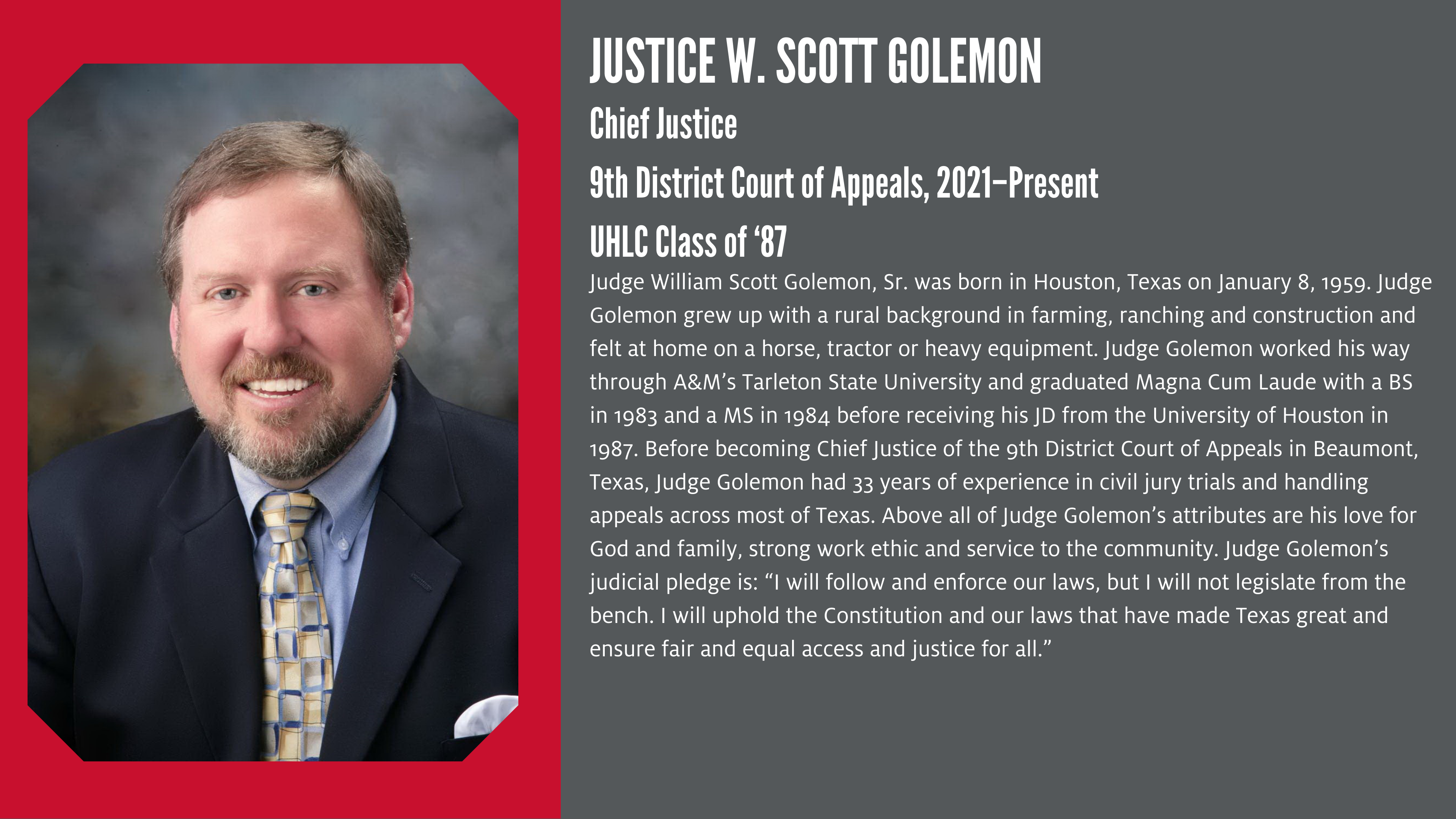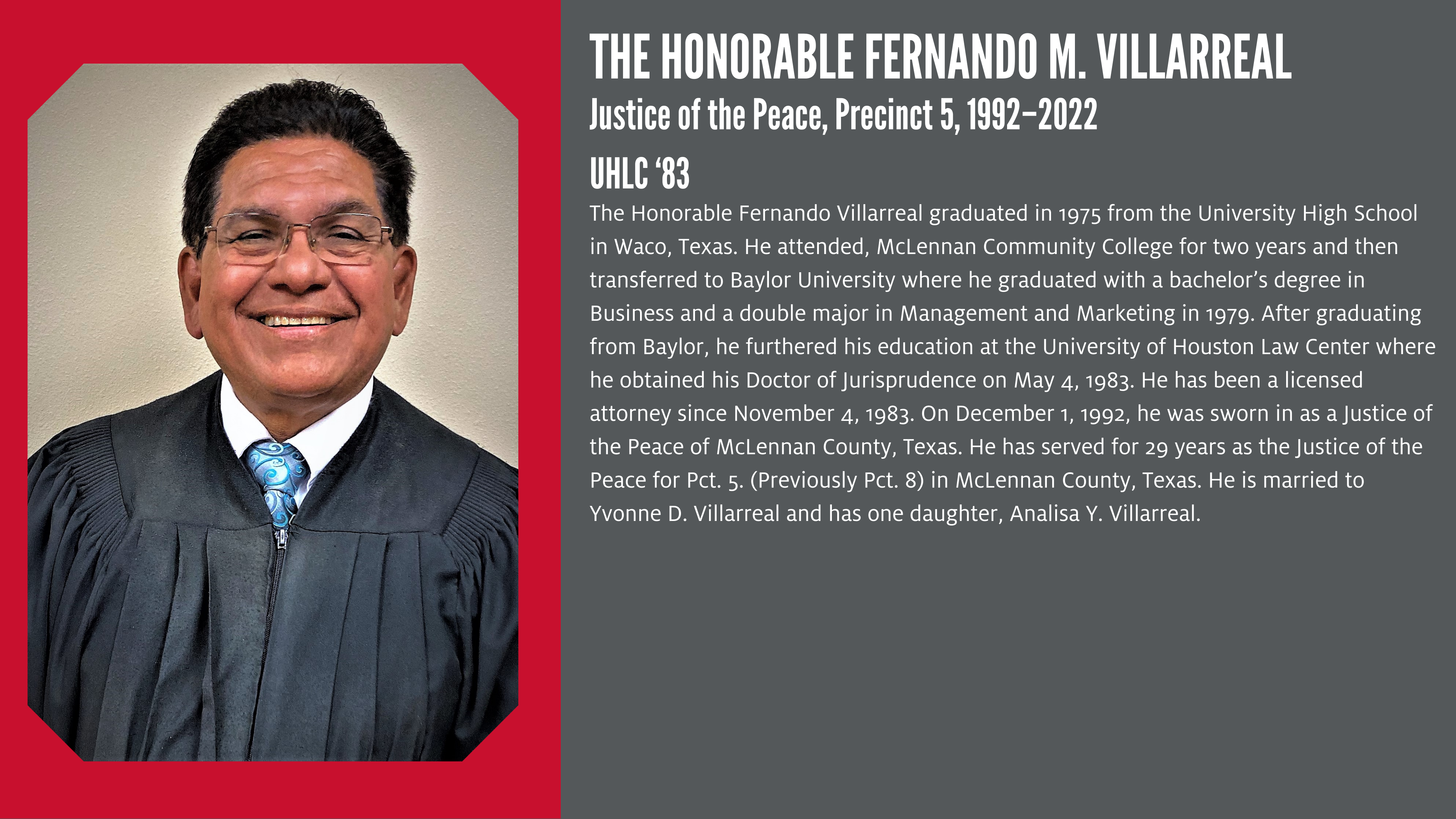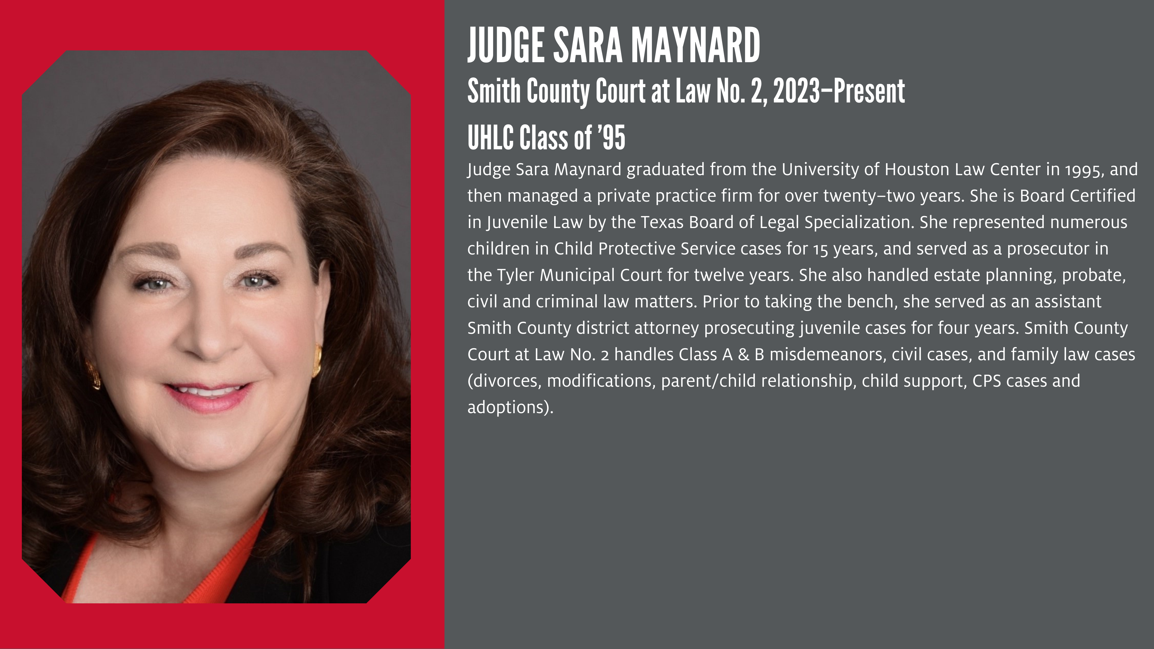 The recognition of the members of the judiciary is an ongoing project made possible by your submissions. To be included on the digital judicial wall and this site, please CLICK HERE. For questions, to update an existing slide, or to add someone you know, please contact Kristina Van Arsdel at kgvanars@central.uh.edu.