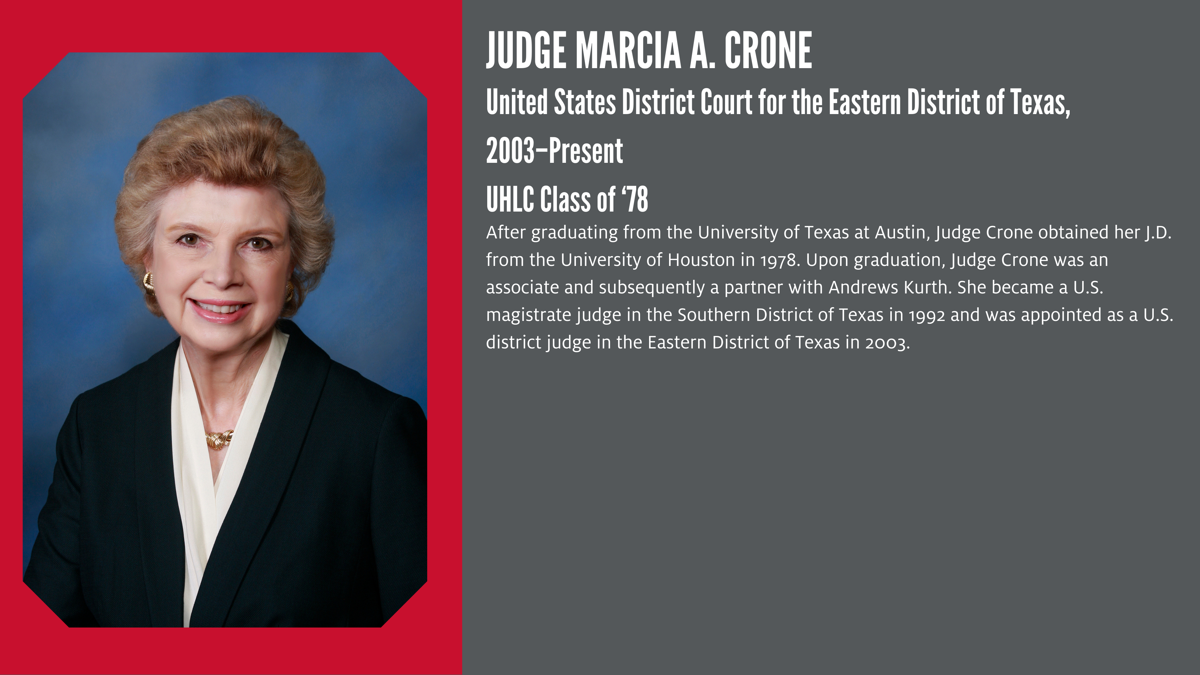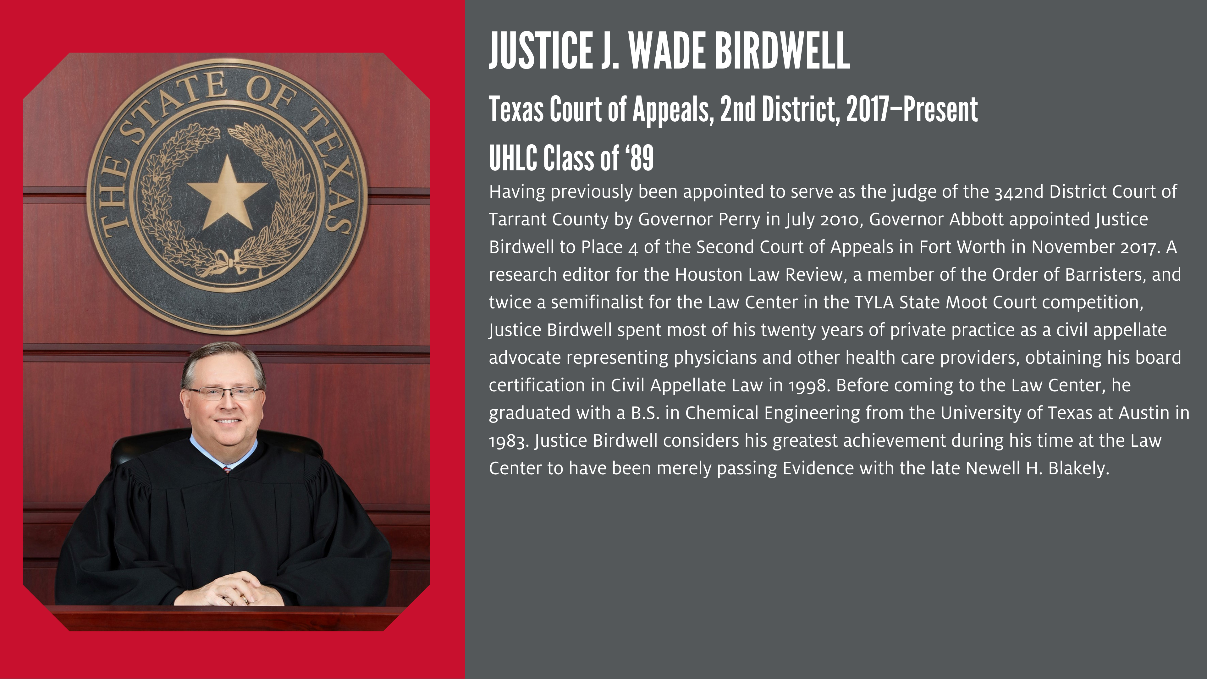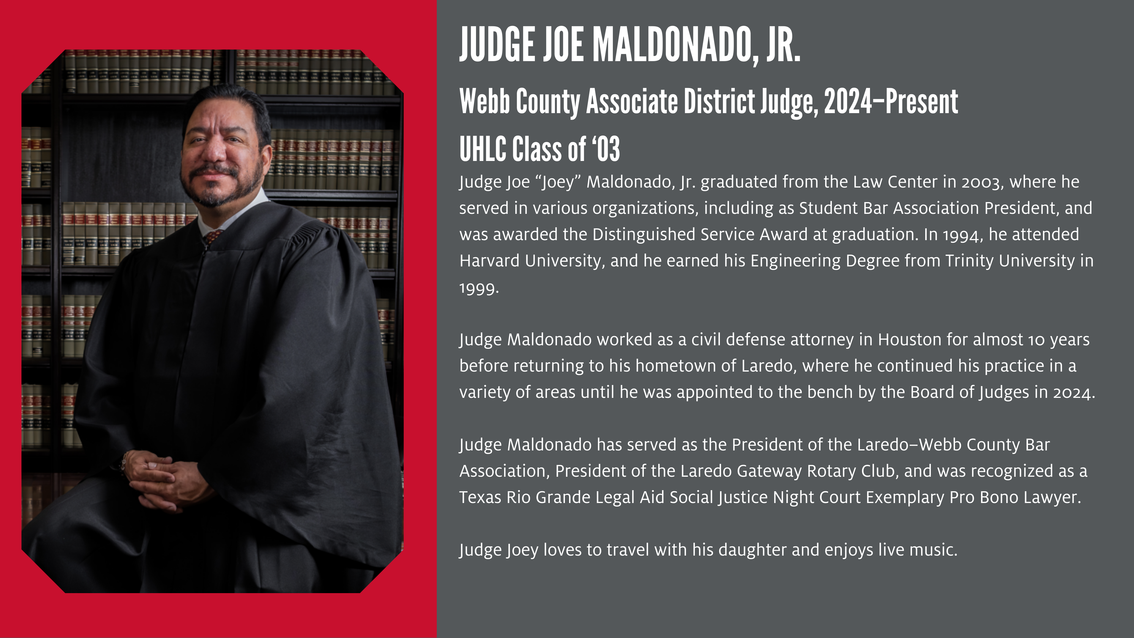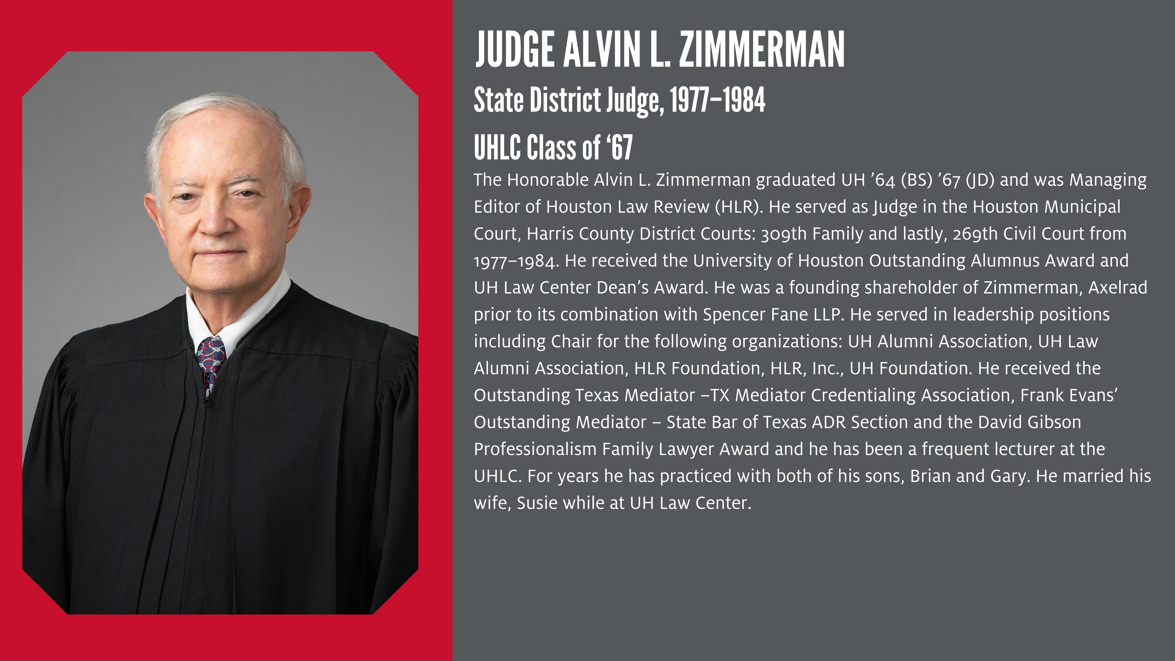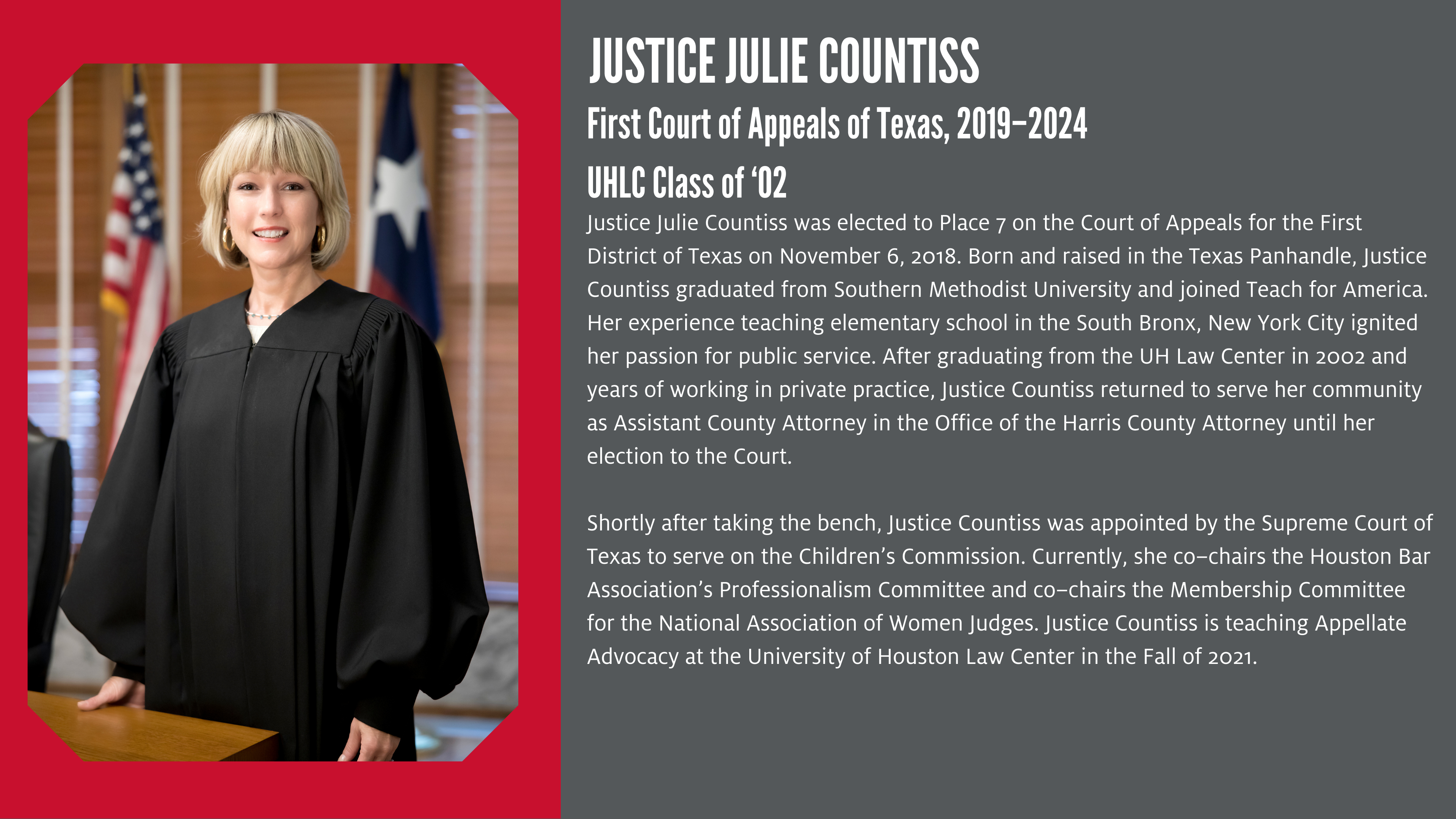 The recognition of the members of the judiciary is an ongoing project made possible by your submissions. To be included on the digital judicial wall and this site, please CLICK HERE. For questions, to update an existing slide, or to add someone you know, please contact Kristina Van Arsdel at kgvanars@central.uh.edu.