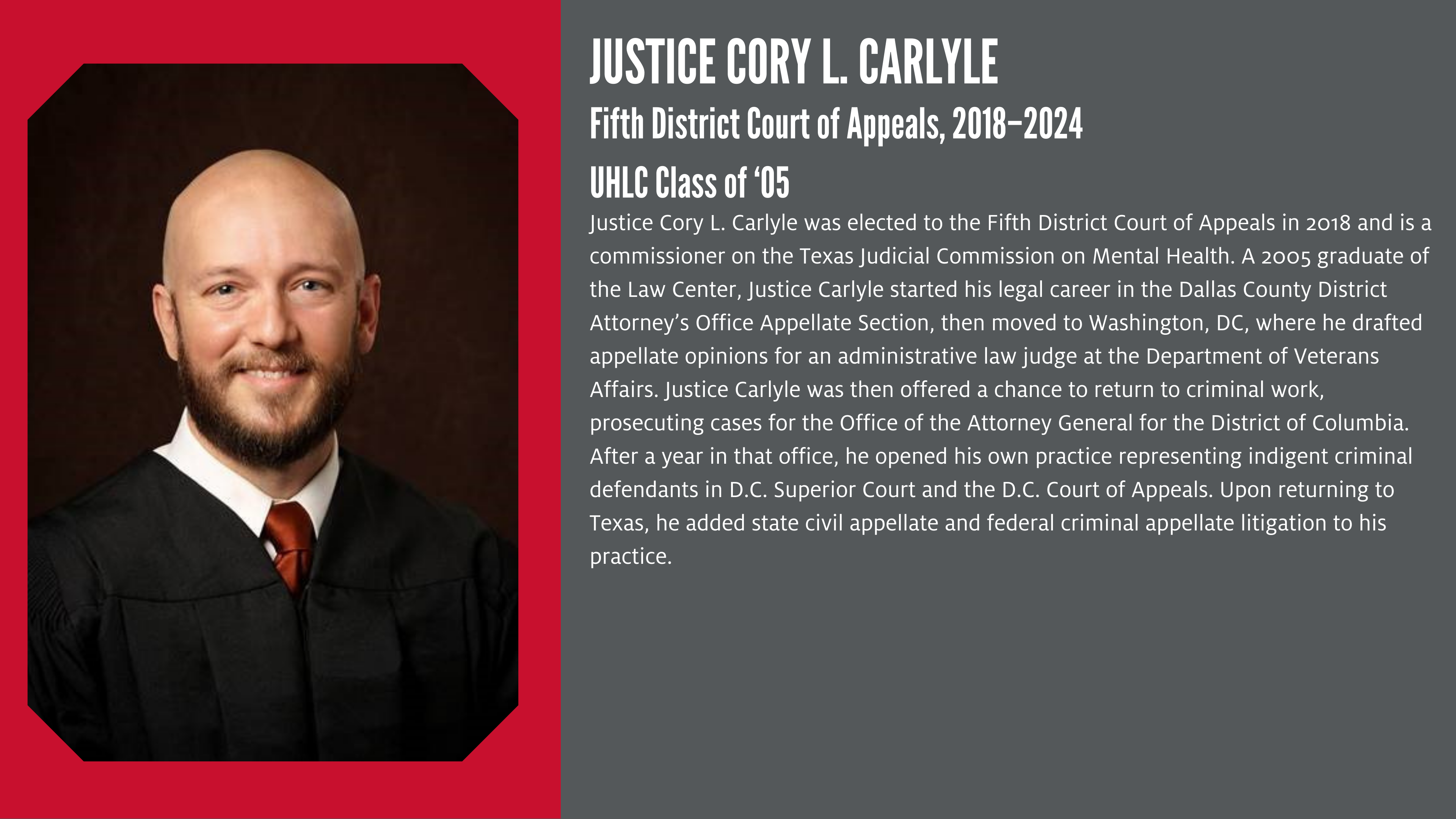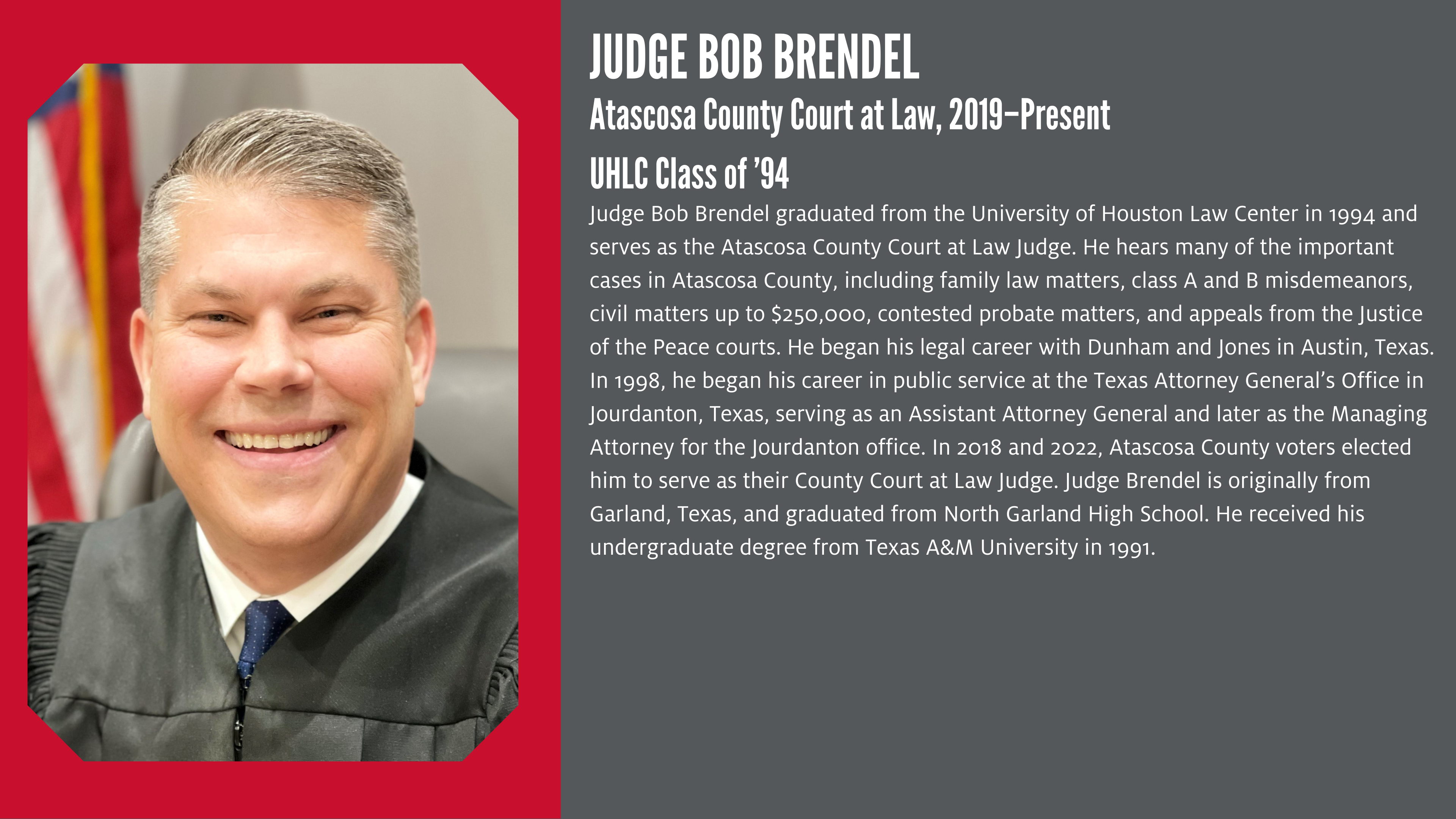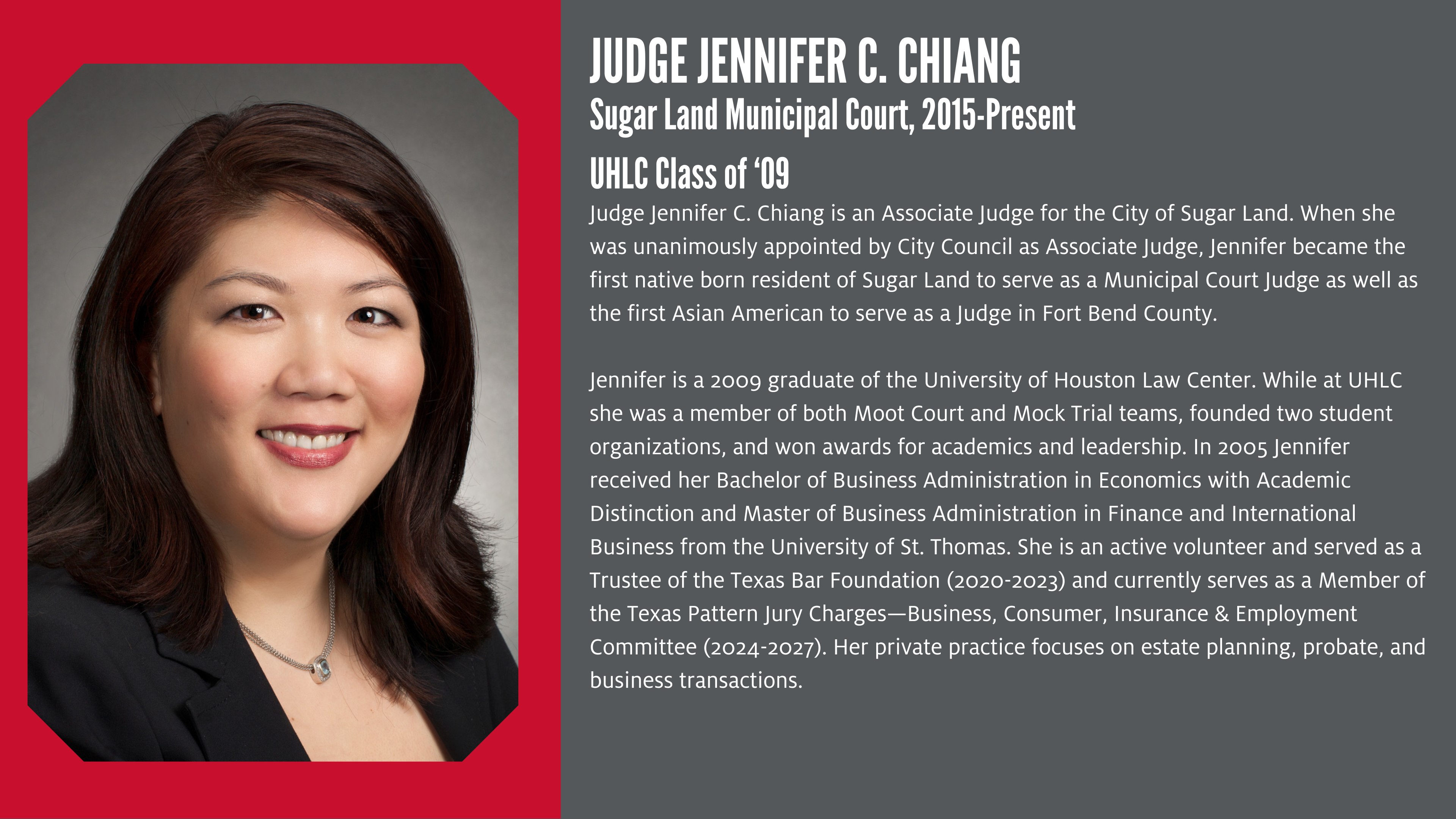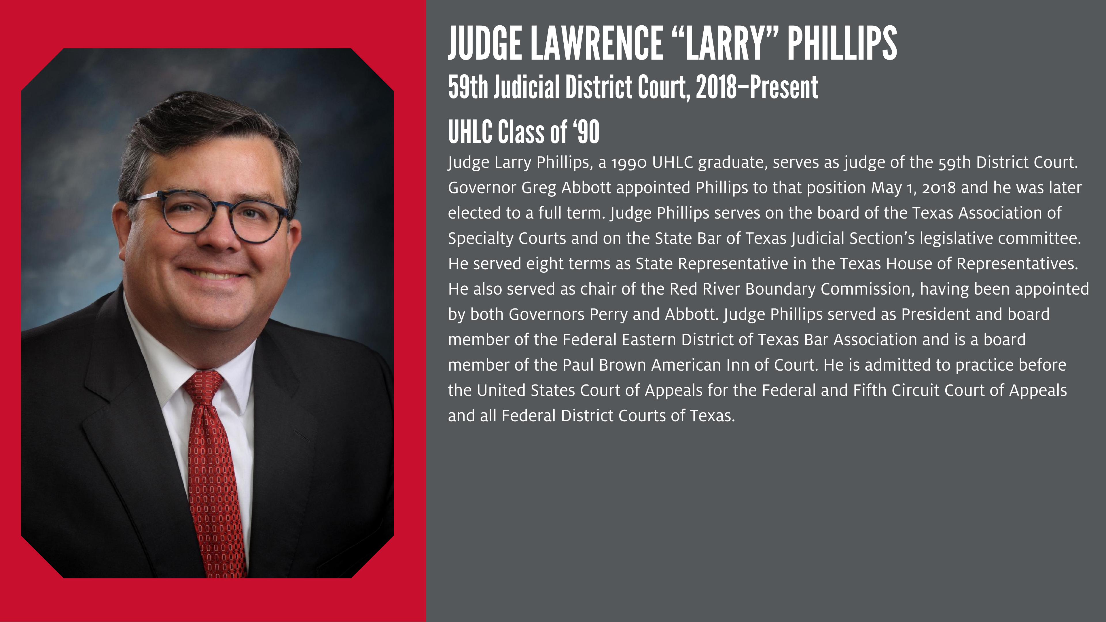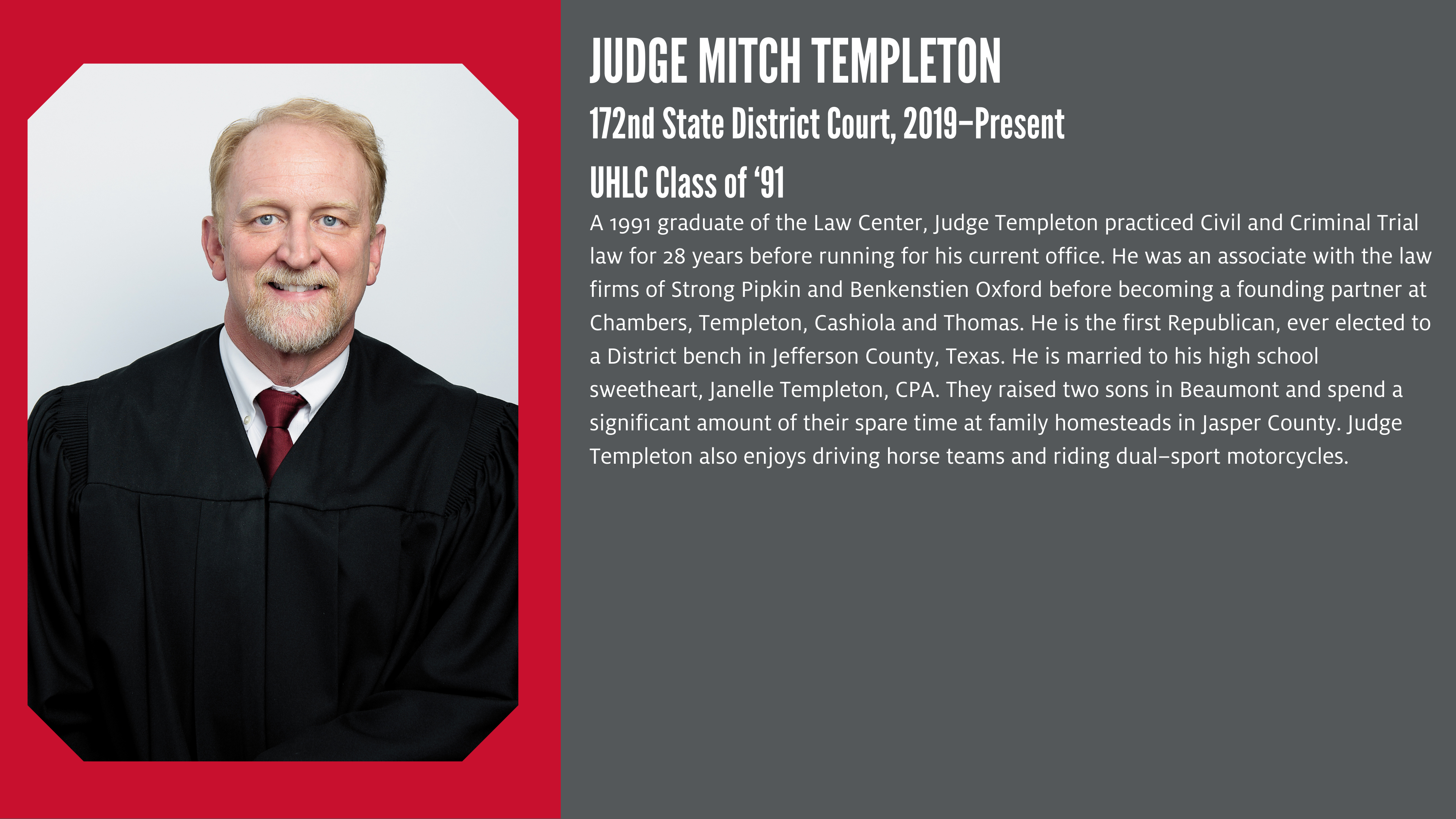 The recognition of the members of the judiciary is an ongoing project made possible by your submissions. To be included on the digital judicial wall and this site, please CLICK HERE. For questions, to update an existing slide, or to add someone you know, please contact Kristina Van Arsdel at kgvanars@central.uh.edu.