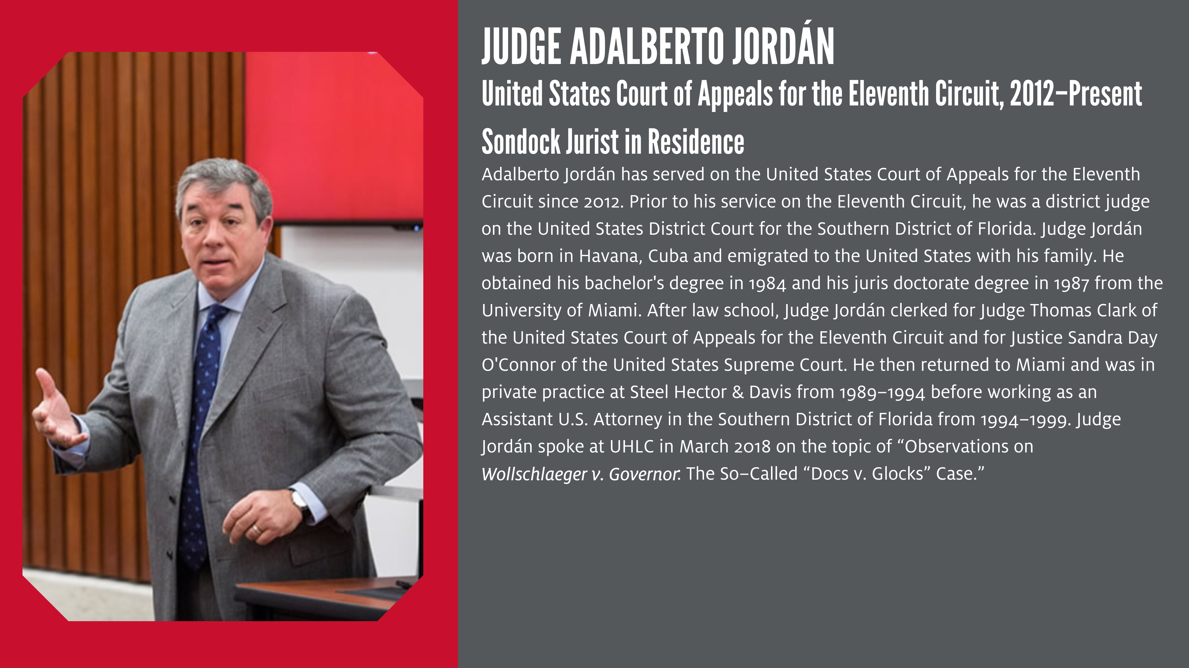 We are honored to recognize our alumni judges, past and present, as well as visiting jurists in residence on a digital wall located on the first floor of the Law Center. The images on that wall are memorialized on this site. The judicial photos and biographies are an inspiration to our students every day.