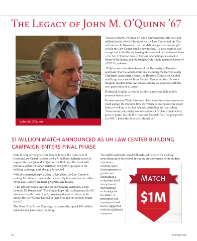 support the new John M. O’Quinn Law Building. The funds will experience,