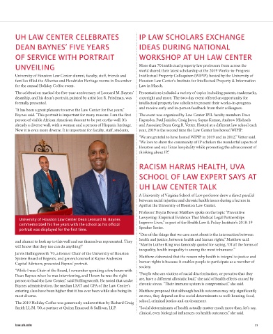 University of Houston Law Center Dean Leonard M. Baynes Improve Lives,” as part of the Health Law & Policy Institute’s 2018-19