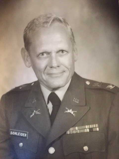 Schleider was released from active duty in 1947 with the rank of Captain. But he continued to serve in the National Guard and Army Reserve, retiring with the rank of Colonel in 1975. He received the Bronze Star with First Oak Leaf Cluster, Purple Heart Meritorious Service Medal, five Bronze Battle Stars, and the German Occupation Medal. He also received the Ordre national de la Légion d'honneur, the highest French order of military merit, for combat service in France during the war.